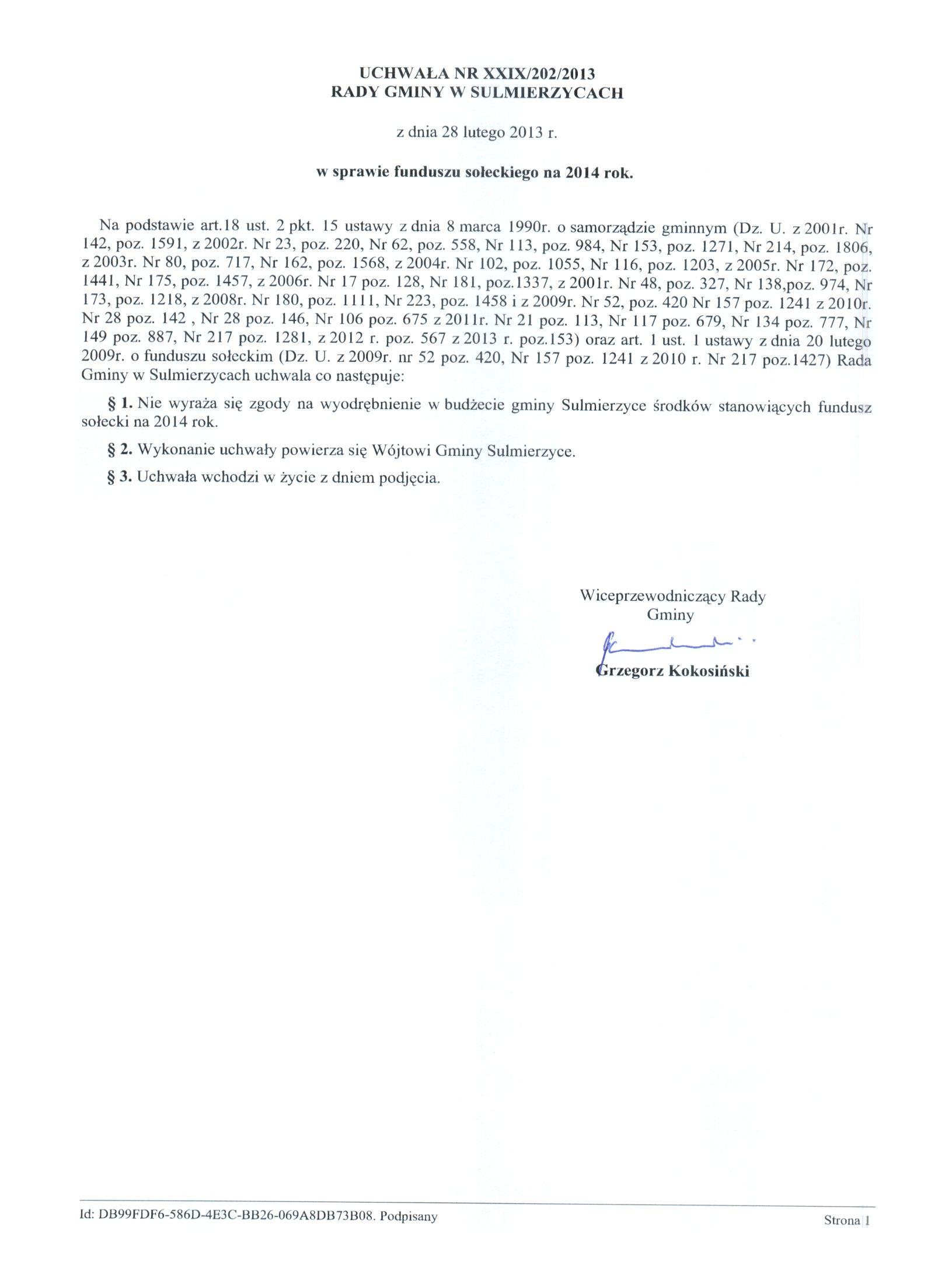 Uchwała Nr XXIX/202/2013 z dnia 28.02.2013 r. w sprawie funduszu sołeckiego na 2014 rok