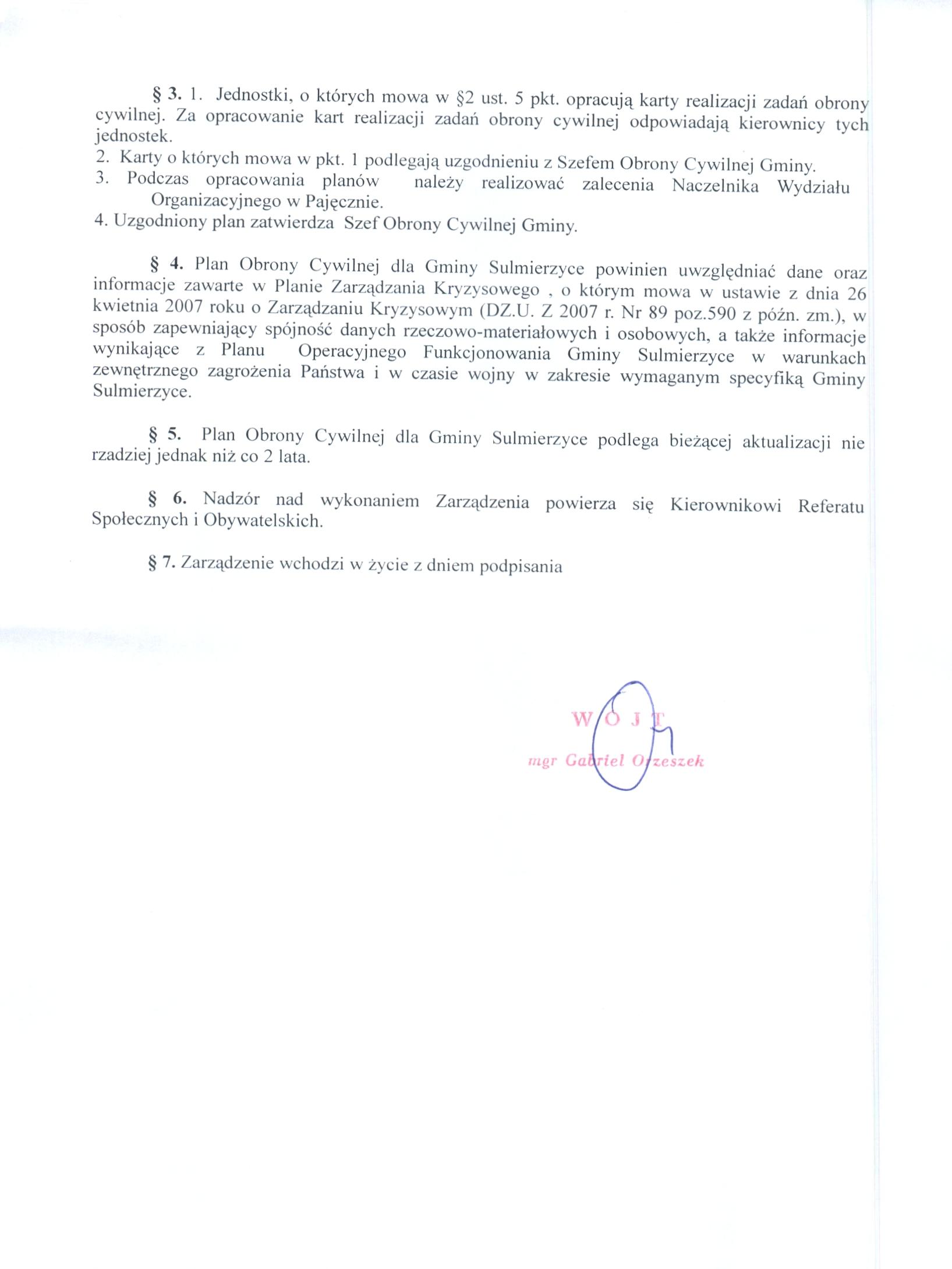 Zarządzenie Nr 120.24.2012 z dnia 24.08.2012 r. w sprawie opracowania Planu Obrony Cywilnej Gminy Sulmierzyce