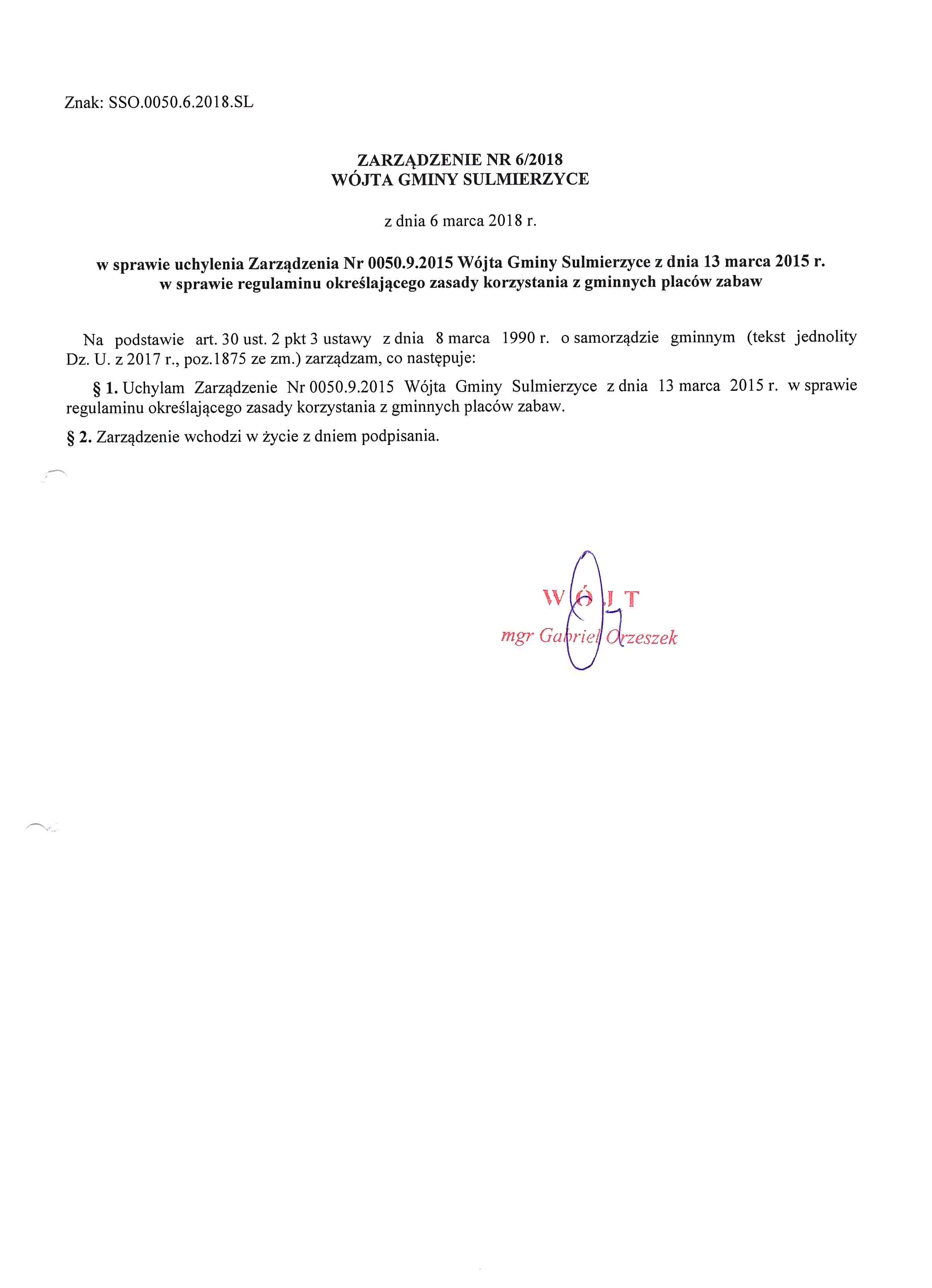 2018-03-06 przez Wójt Gminy Sulmierzyce - Gabriel Orzeszek
