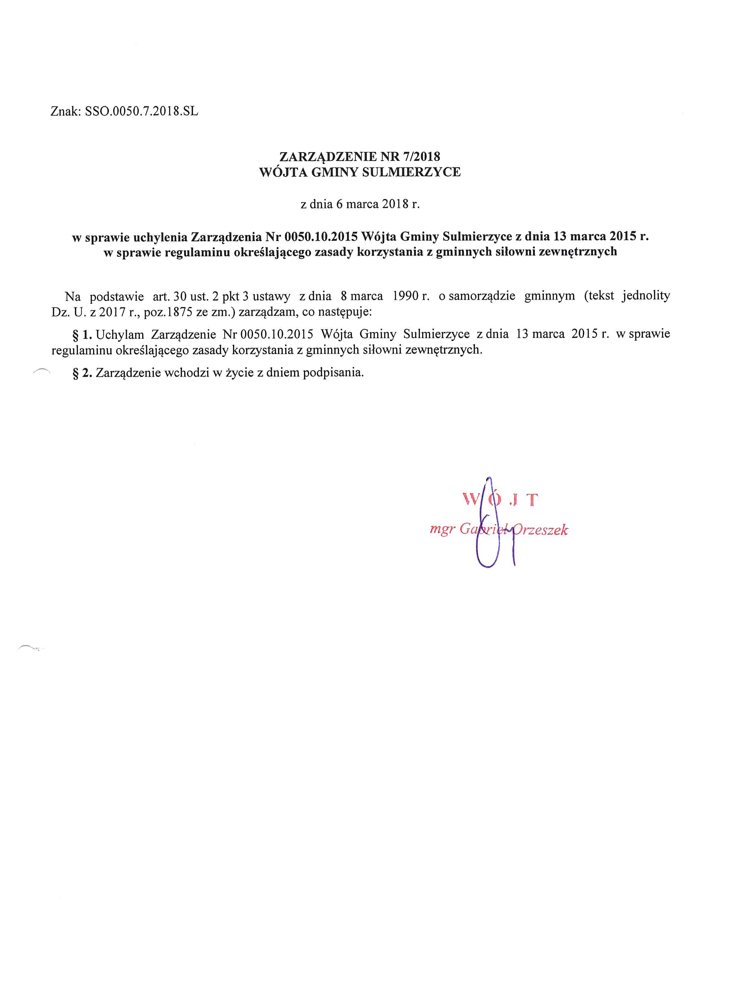 2018-03-06 przez Wójt Gminy Sulmierzyce - Gabriel Orzeszek