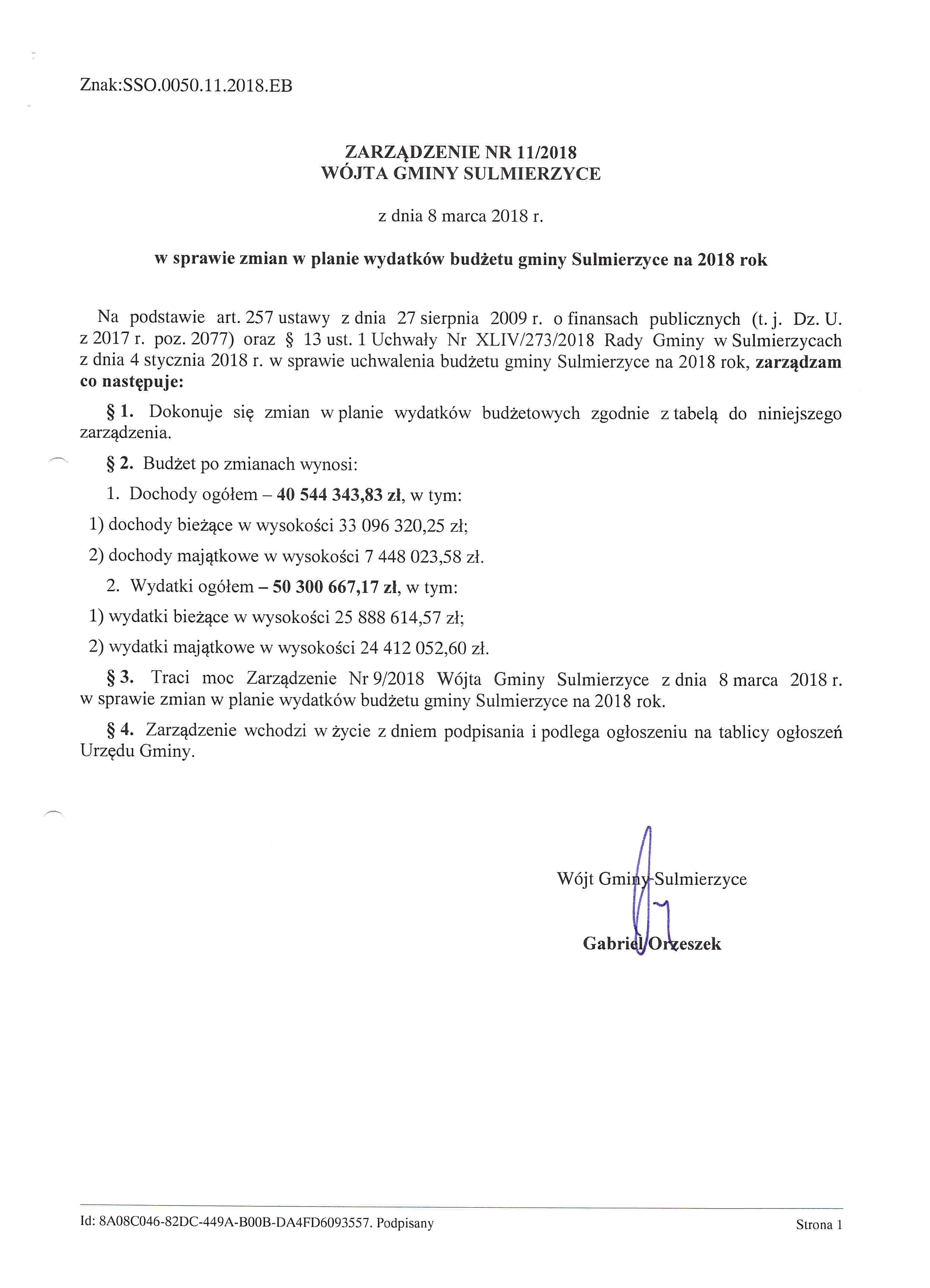 2018-03-08 przez Wójt Gminy Sulmierzyce - Gabriel Orzeszek