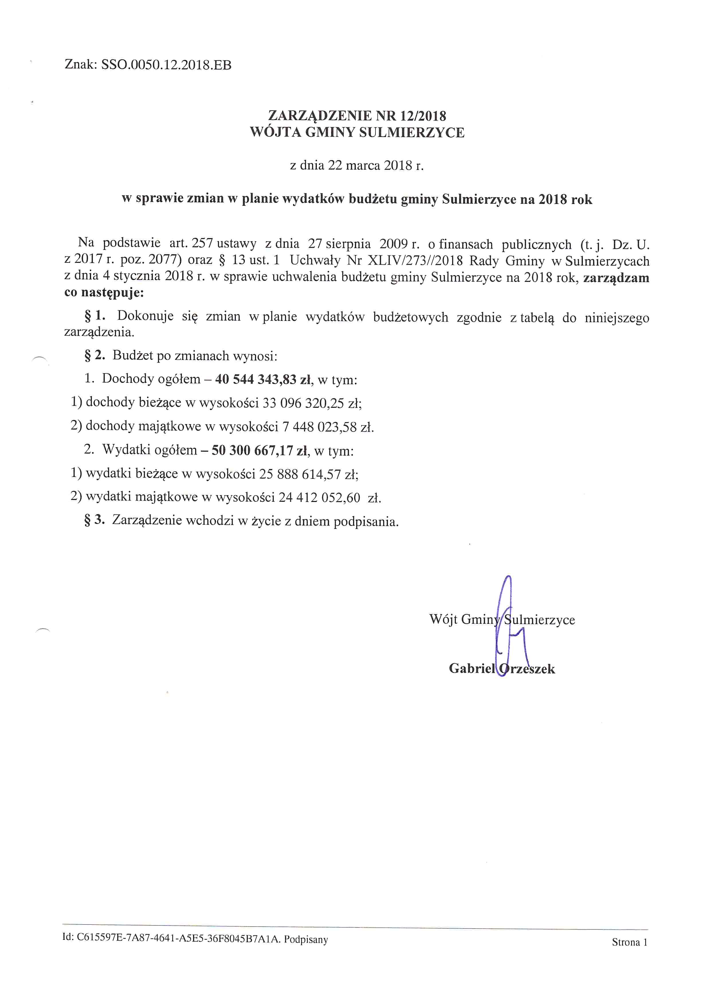 2018-03-22 przez Wójt Gminy Sulmierzyce - Gabriel Orzeszek