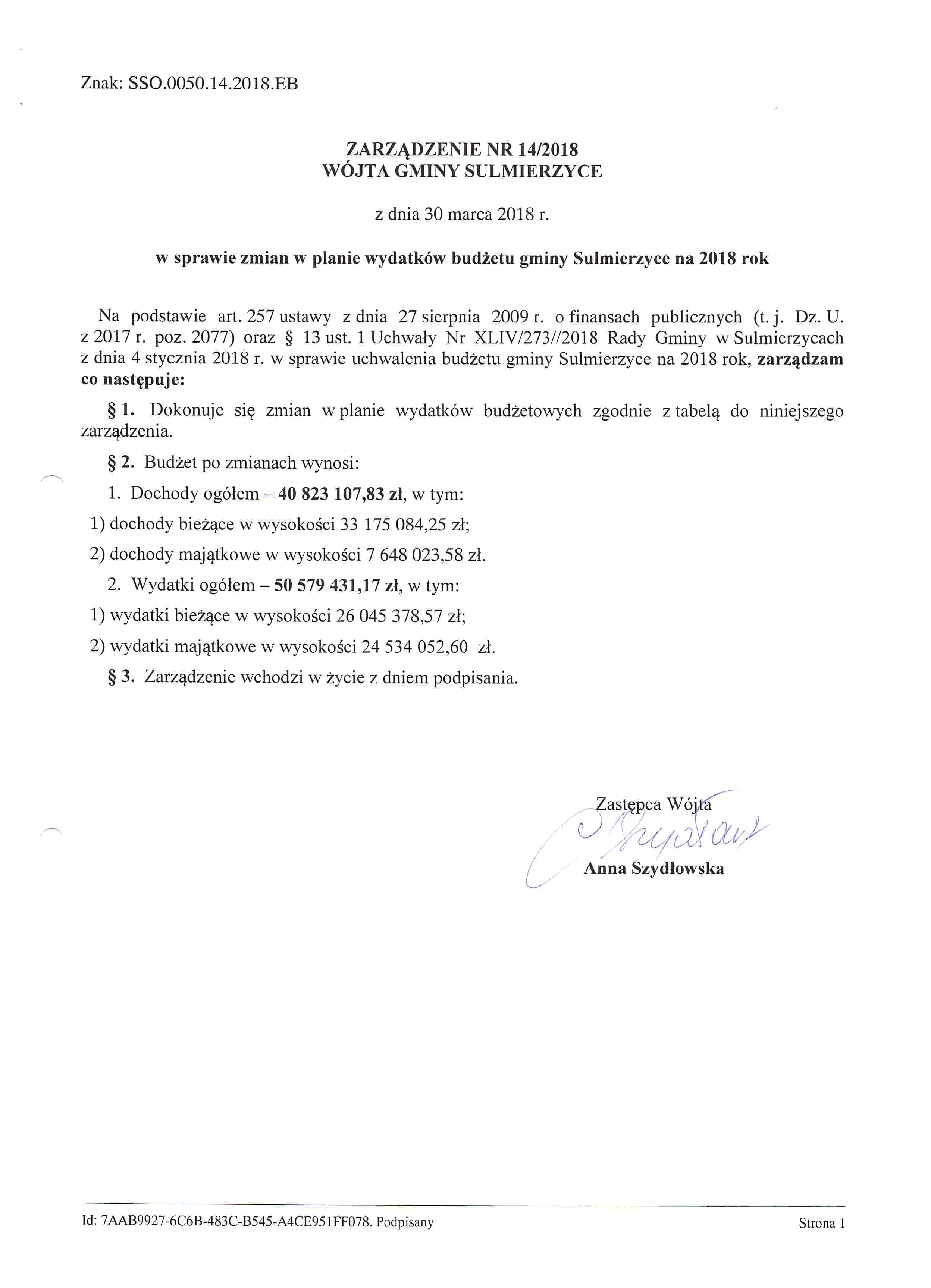 2018-03-30 przez Zastępca Wójta - Anna Szydłowska