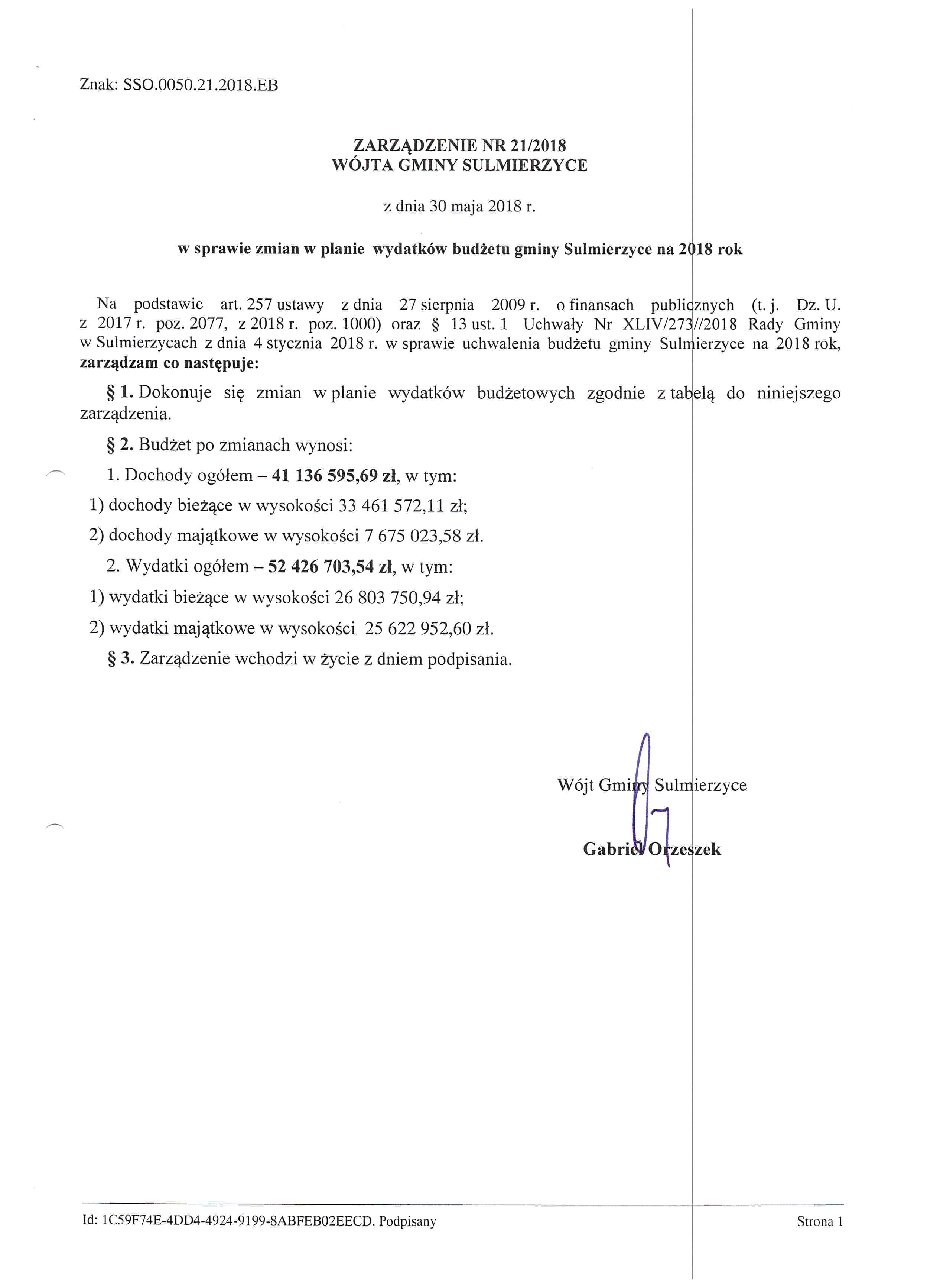 2018-05-30 przez Wójt Gminy Sulmierzyce - Gabriel Orzeszek