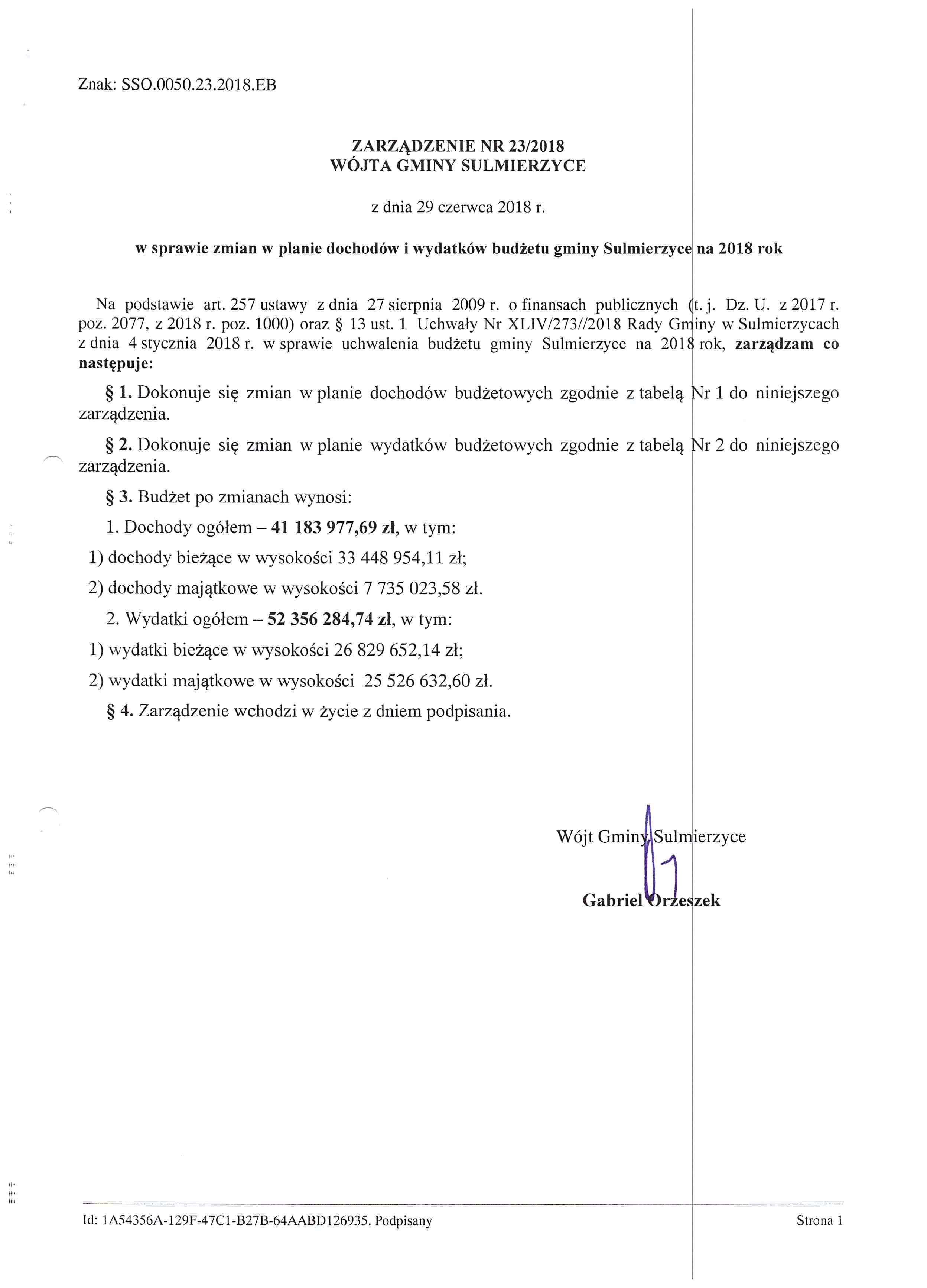 2018-06-29 przez Wójt Gminy Sulmierzyce - Gabriel Orzeszek
