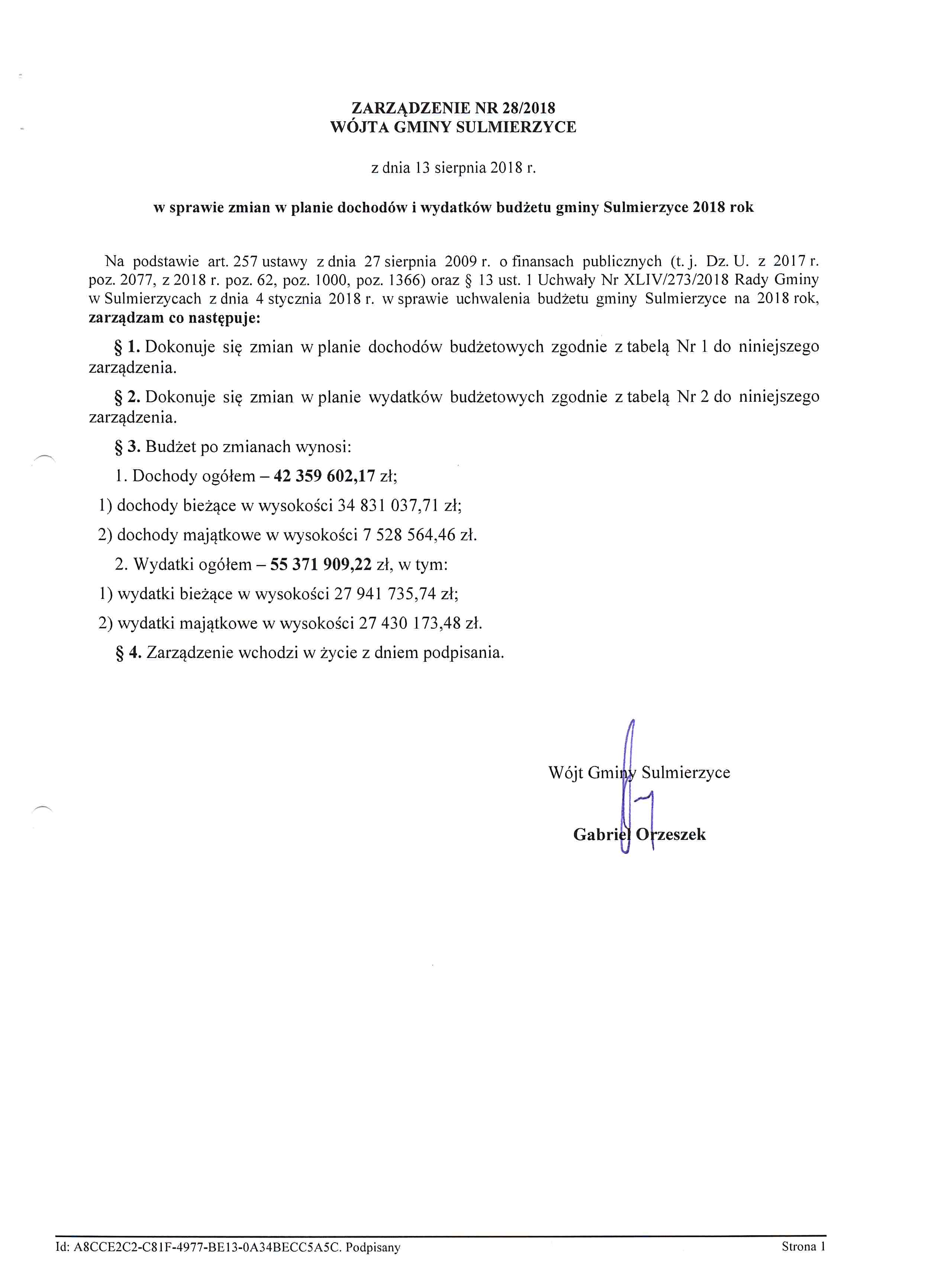 2018-08-13 przez Wójt Gminy Sulmierzyce - Gabriel Orzeszek