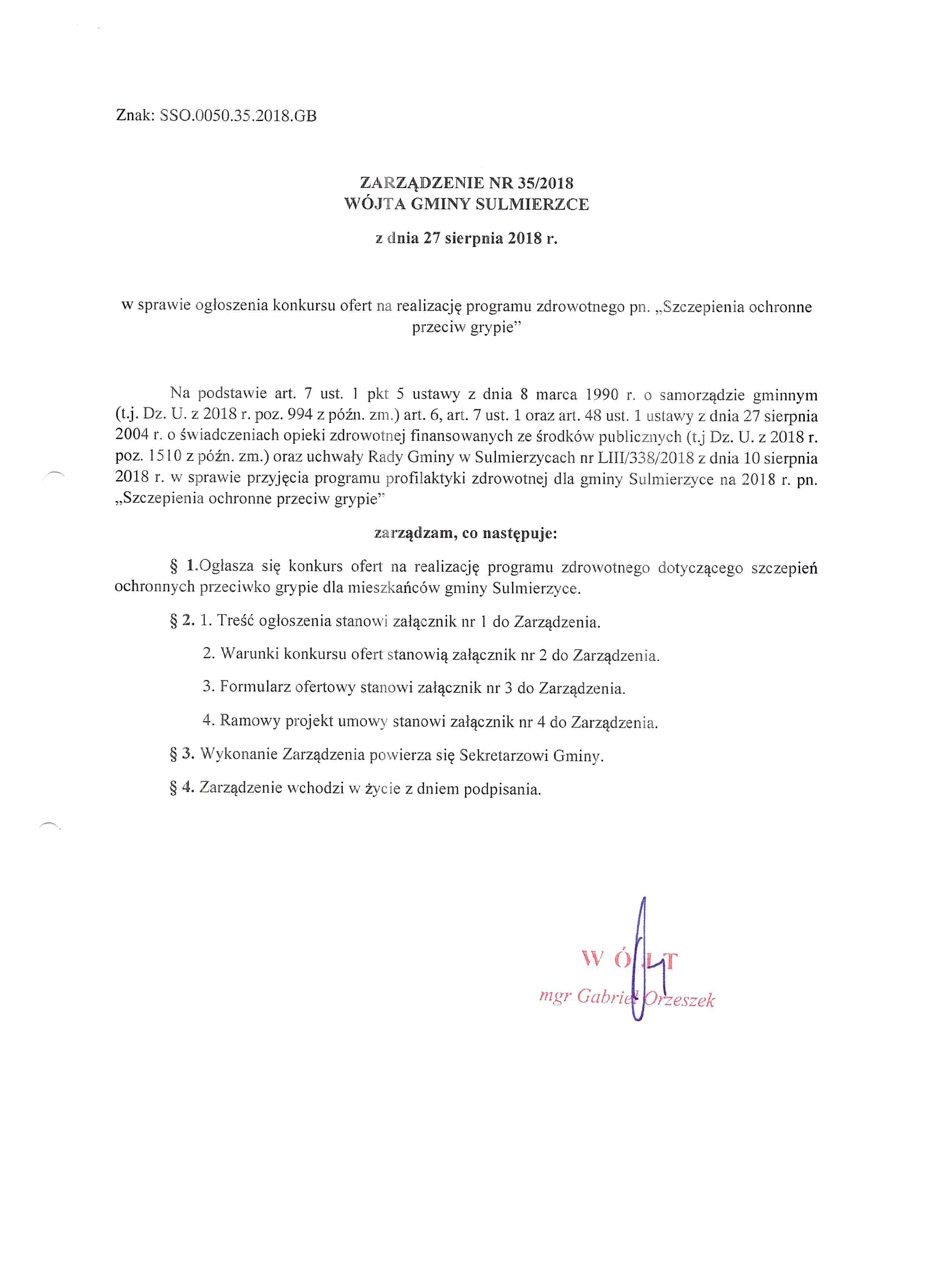 2018-08-27 przez Wójt Gminy Sulmierzyce - Gabriel Orzeszek