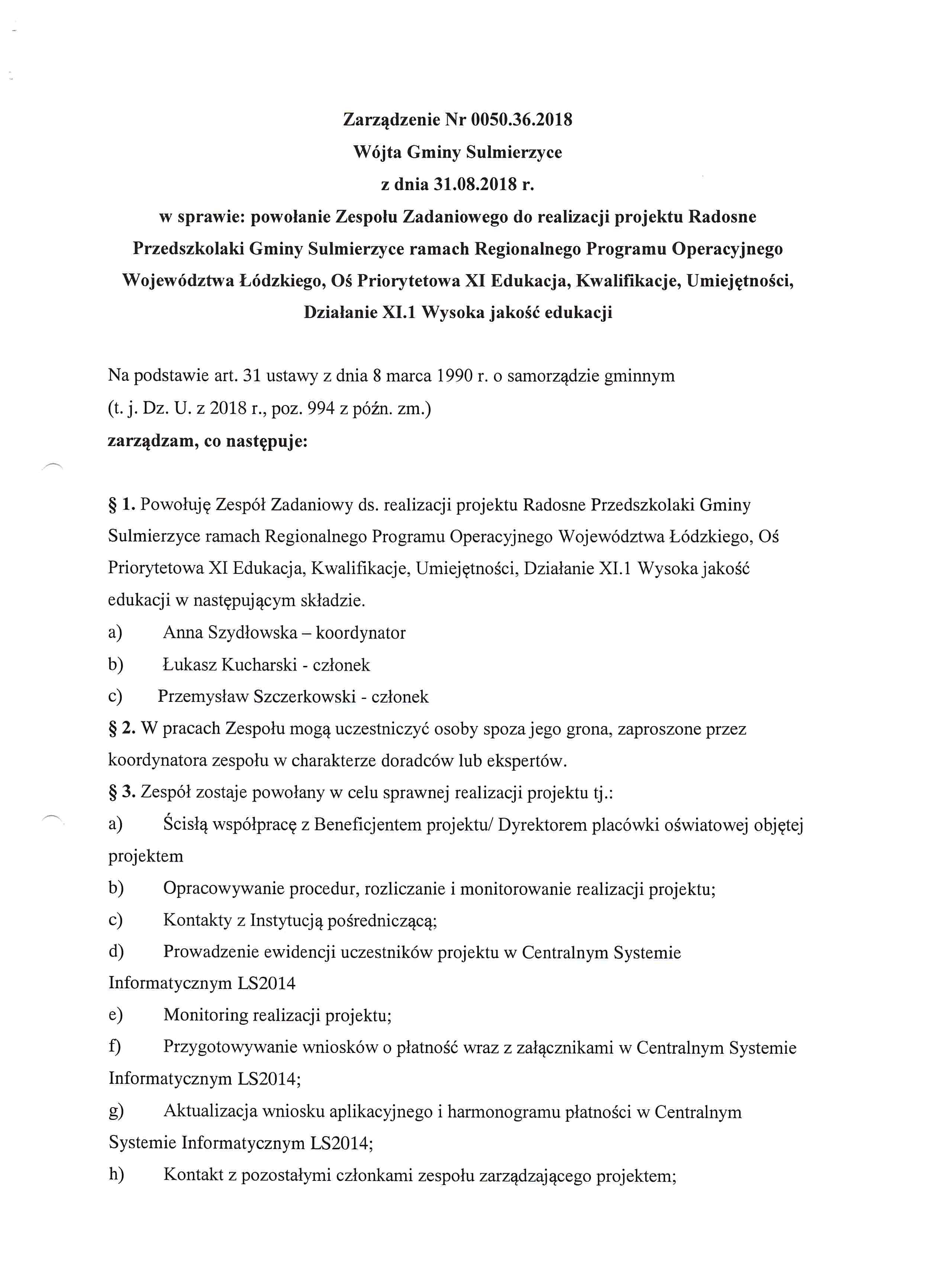 2018-08-31 przez Wójt Gminy Sulmierzyce - Gabriel Orzeszek