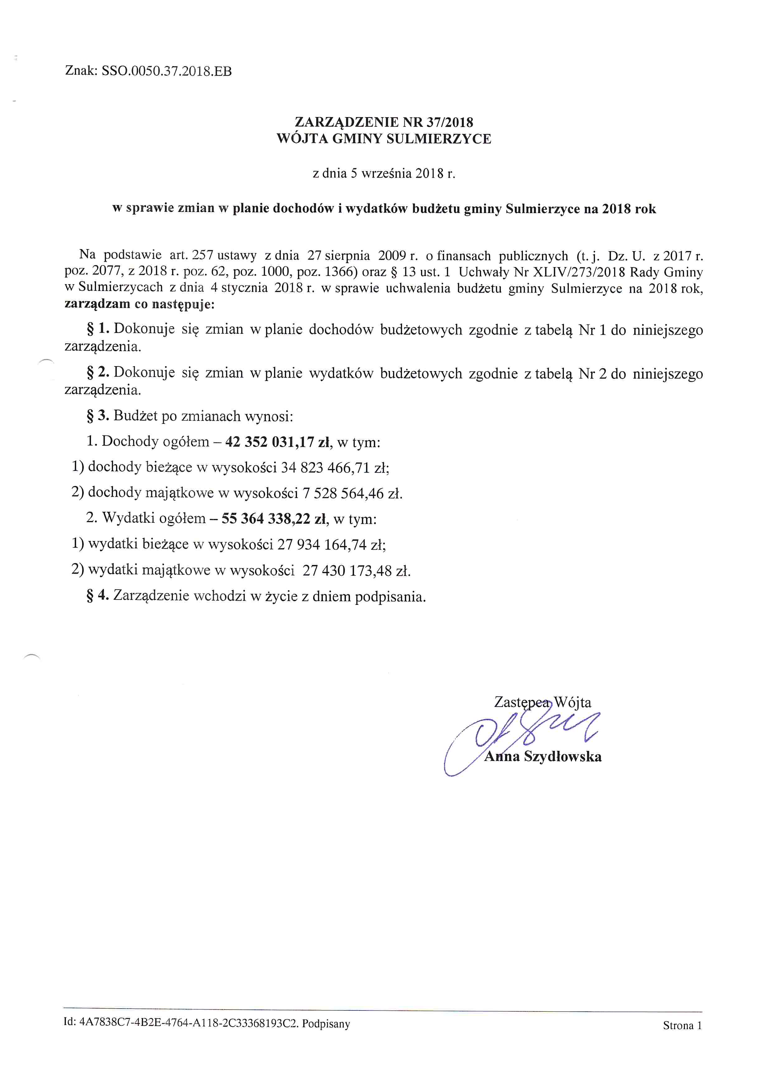 2018-09-05 przez Zastępca Wójta - Anna Szydłowska