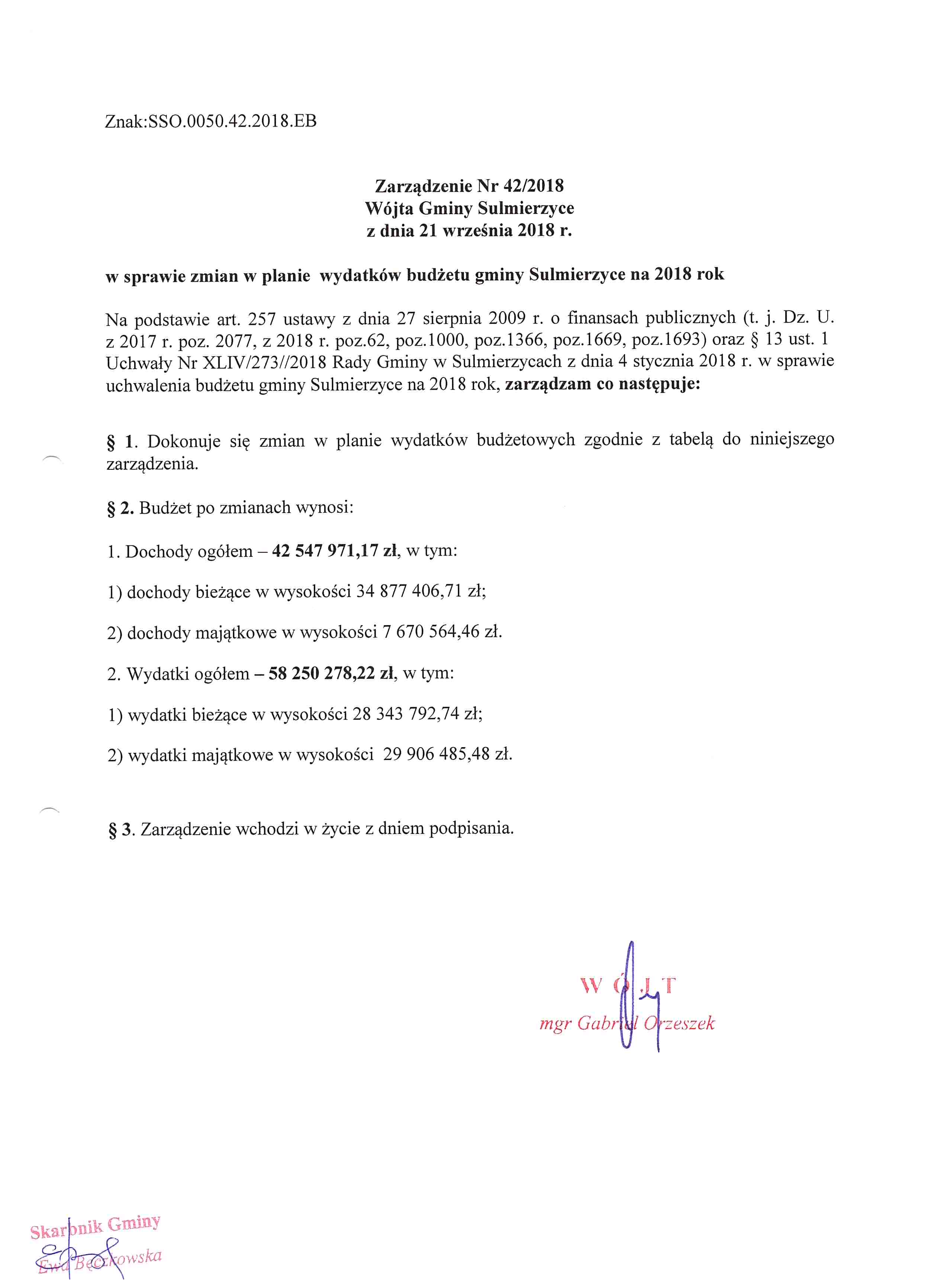 2018-09-21 przez Wójt Gminy Sulmierzyce - Gabriel Orzeszek