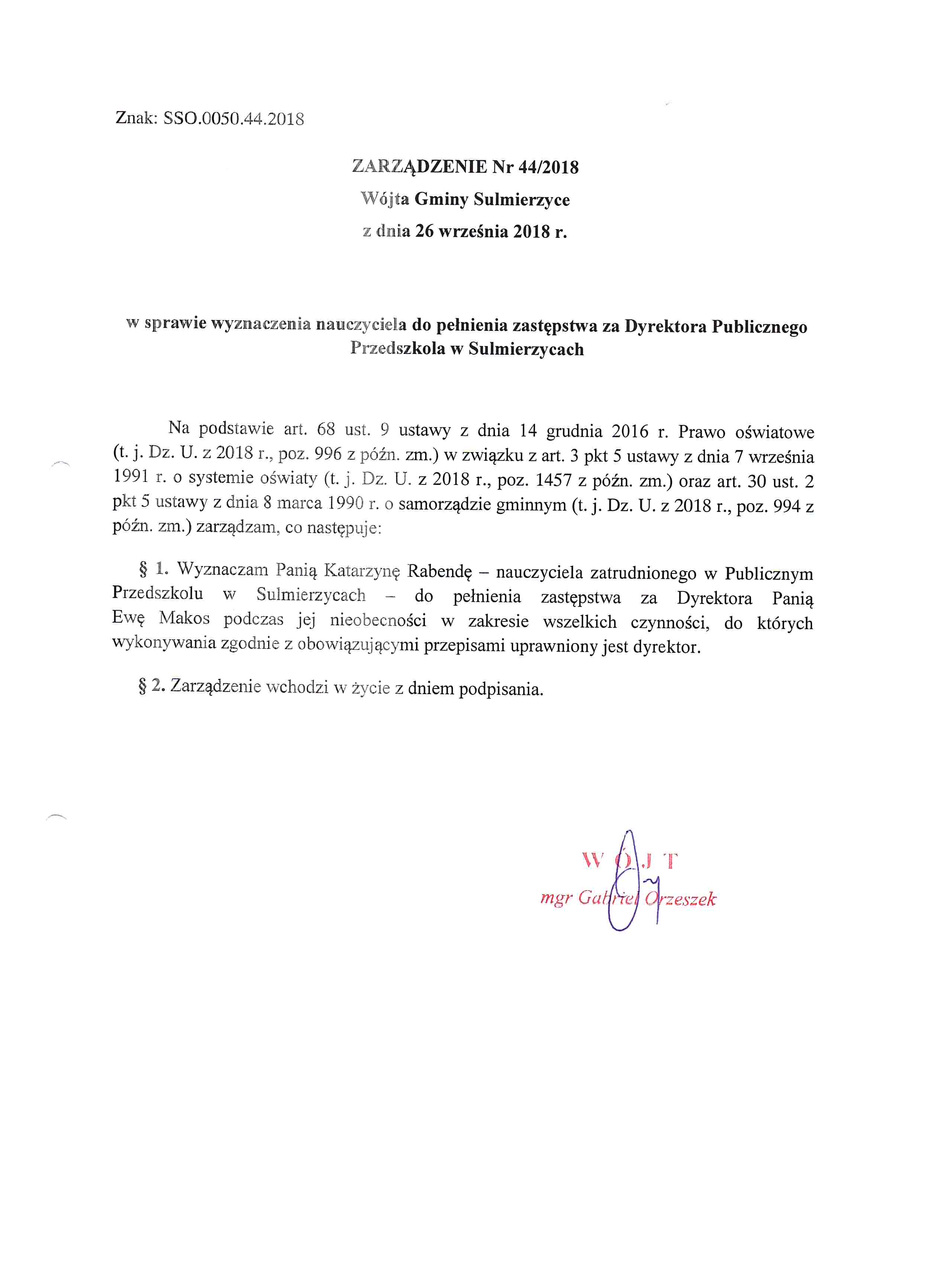 2018-09-26 przez Wójt Gminy Sulmierzyce - Gabriel Orzeszek