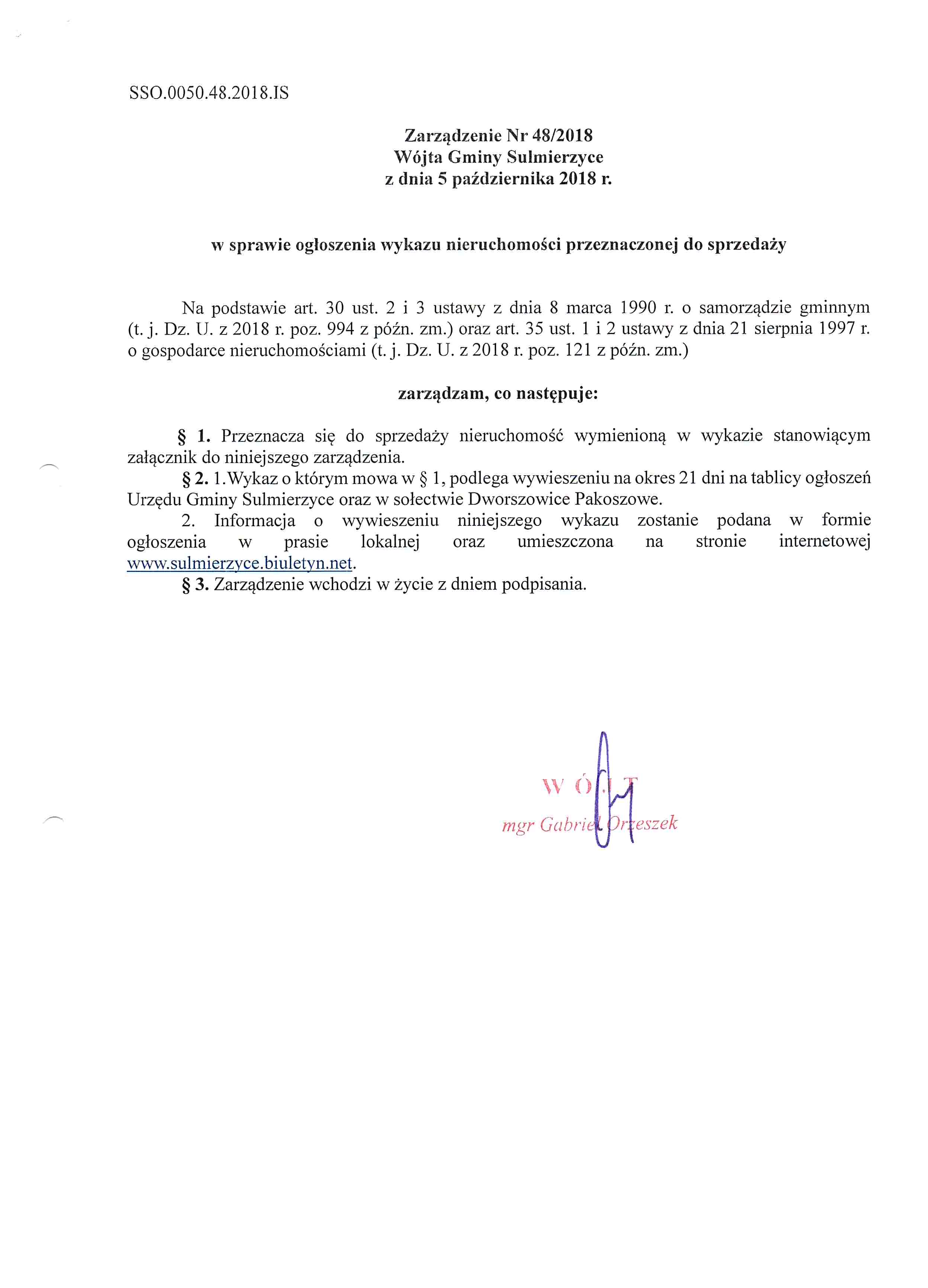 2018-10-05 przez Wójt Gminy Sulmierzyce - Gabriel Orzeszek