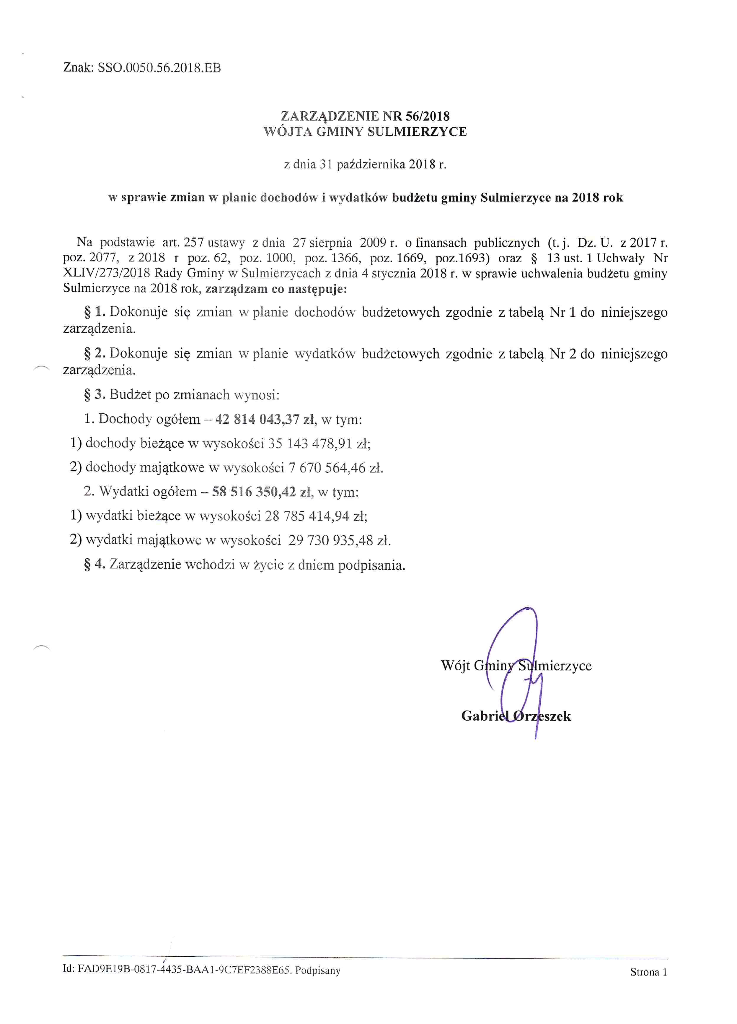 2018-10-31 przez Wójt Gminy Sulmierzyce - Gabriel Orzeszek