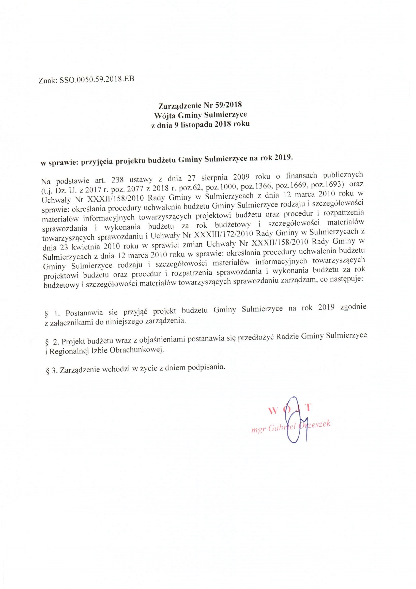 2018-11-09 przez Wójt Gminy Sulmierzyce - Gabriel Orzeszek