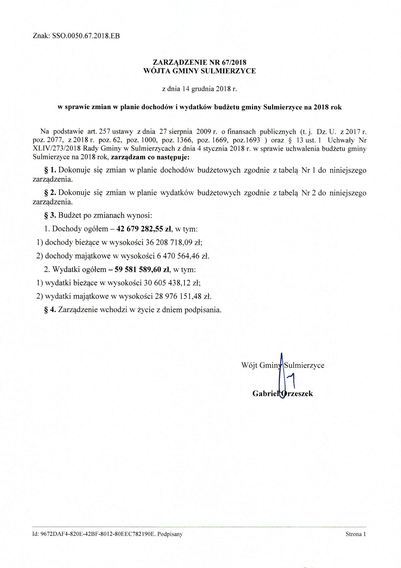 2018-12-14 przez Wójt Gminy Sulmierzyce - Gabriel Orzeszek