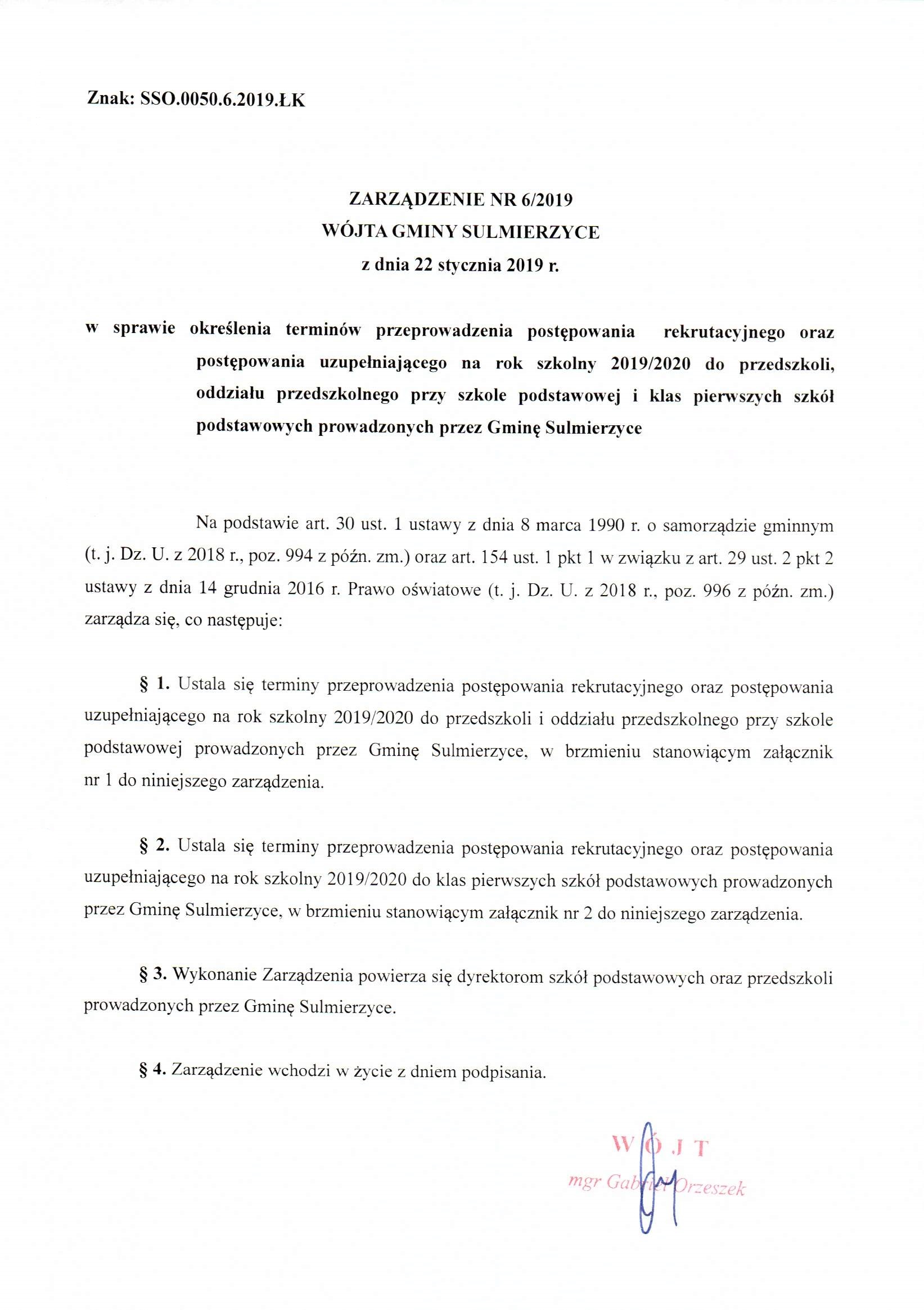 2019-01-22 przez Wójt Gminy Sulmierzyce - Gabriel Orzeszek