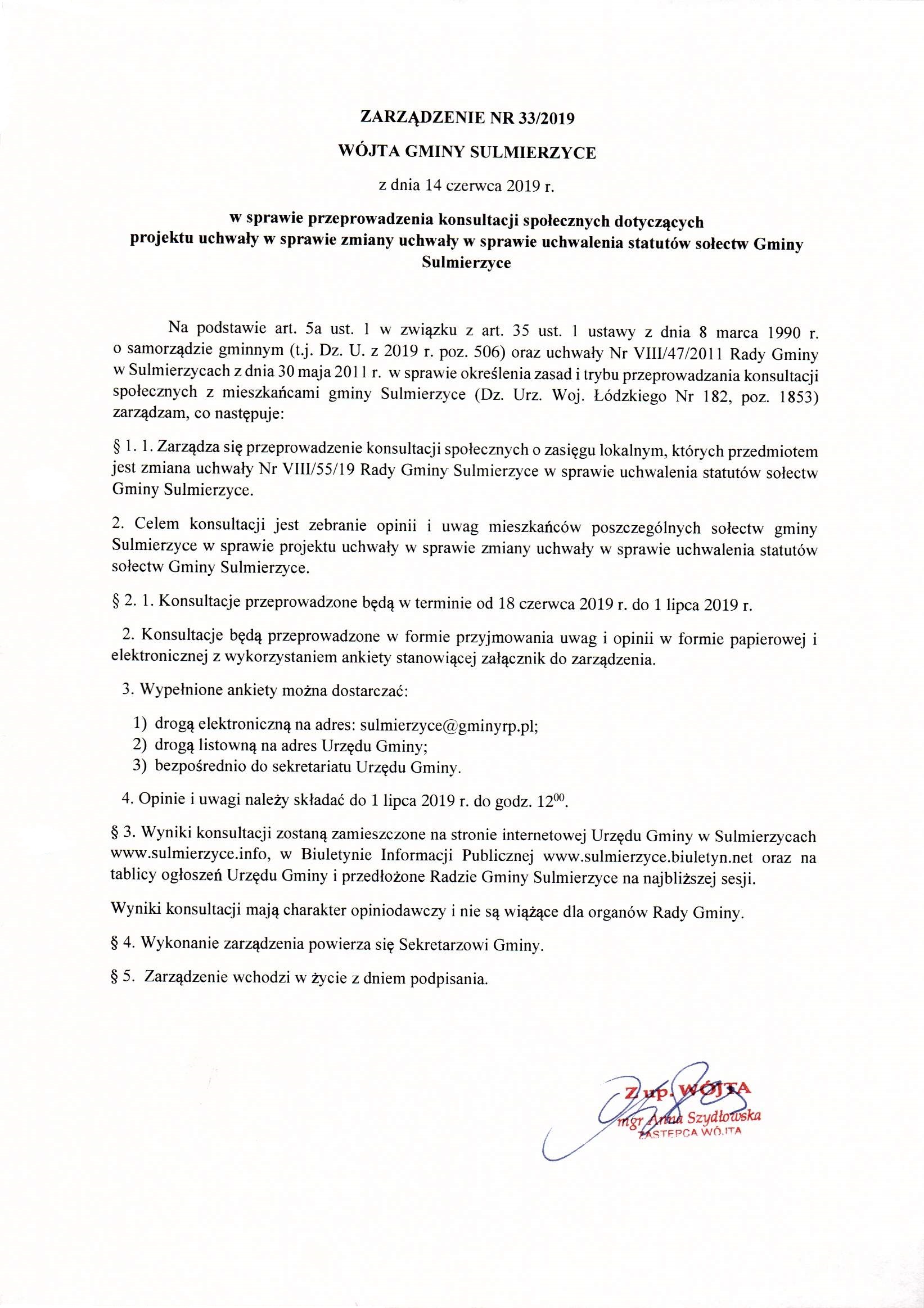 2019-06-14 przez Zastępca Wójta - Anna Szydłowska
