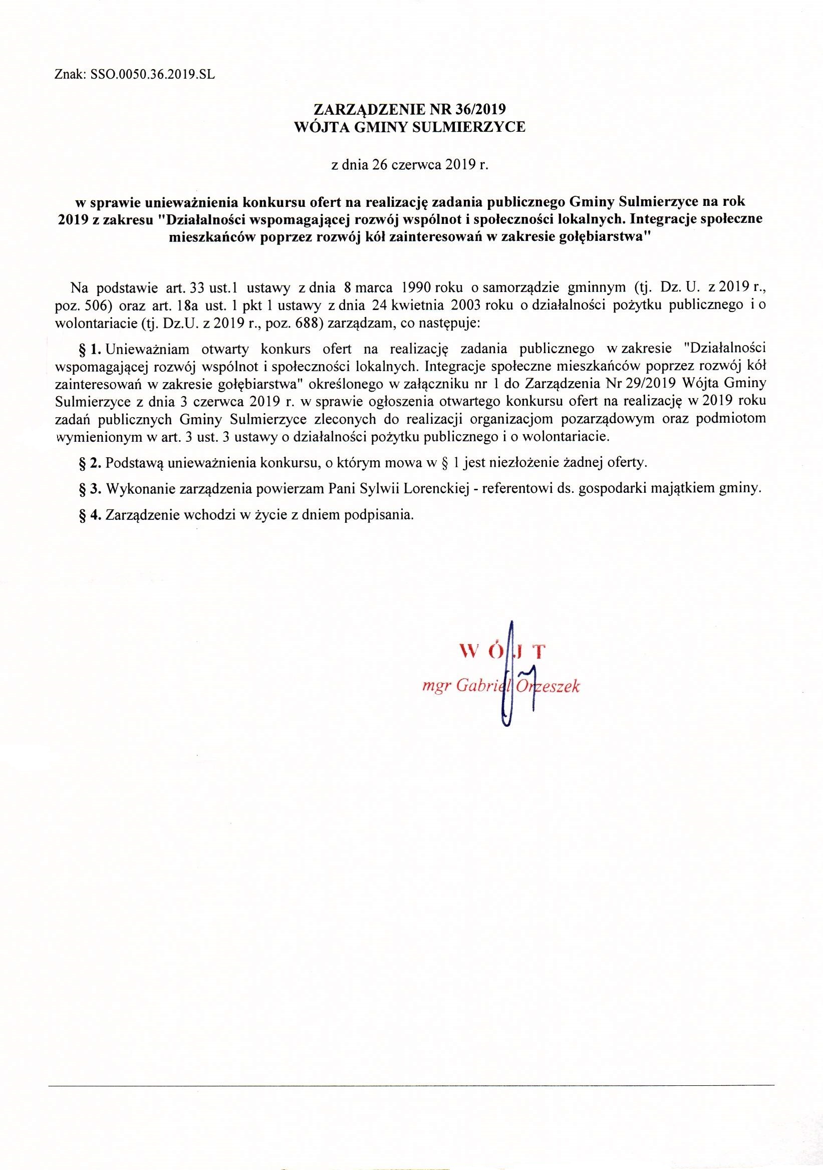 2019-06-26 przez Wójt Gminy Sulmierzyce - Gabriel Orzeszek