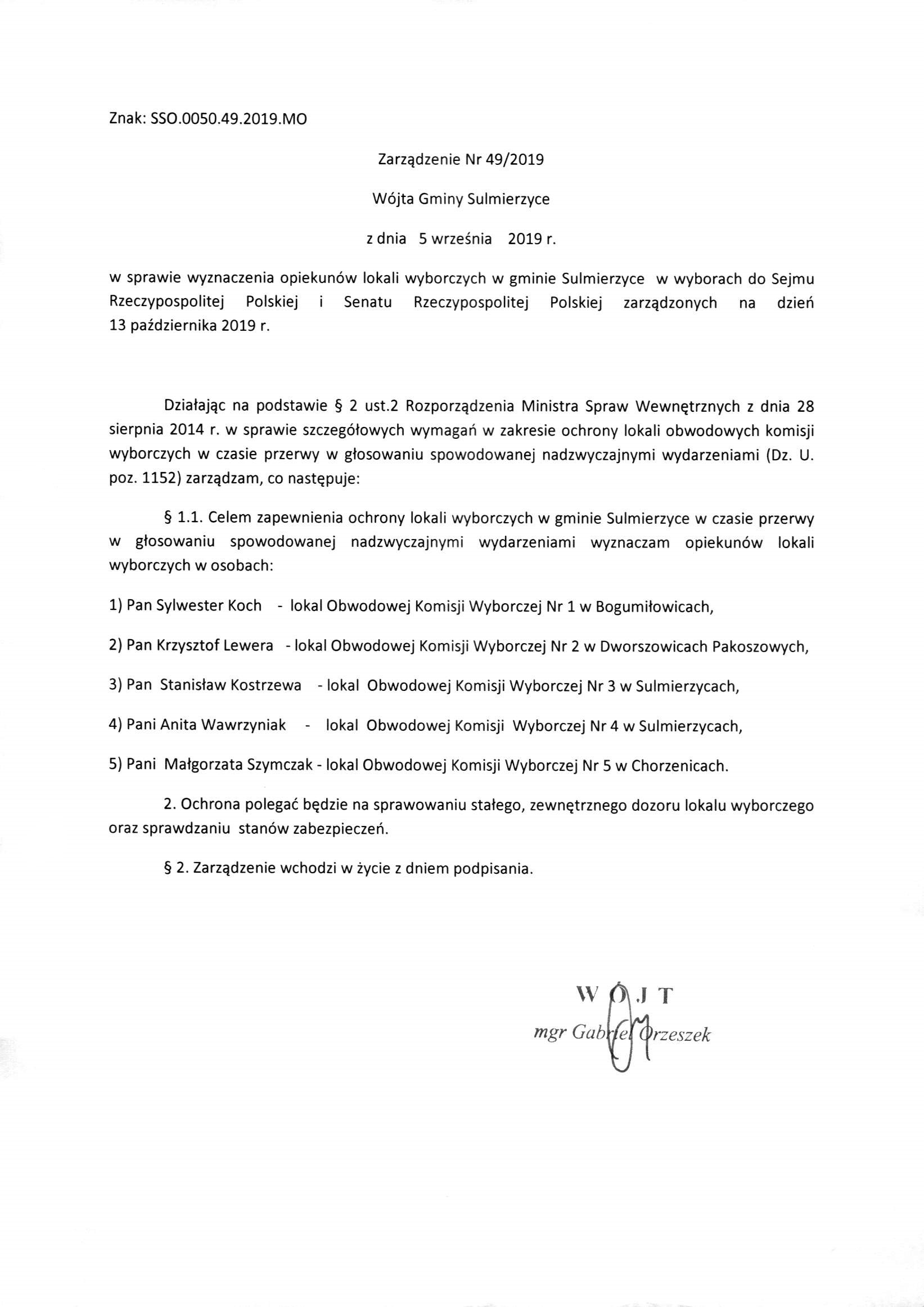 2019-09-05 przez Wójt Gminy Sulmierzyce - Gabriel Orzeszek