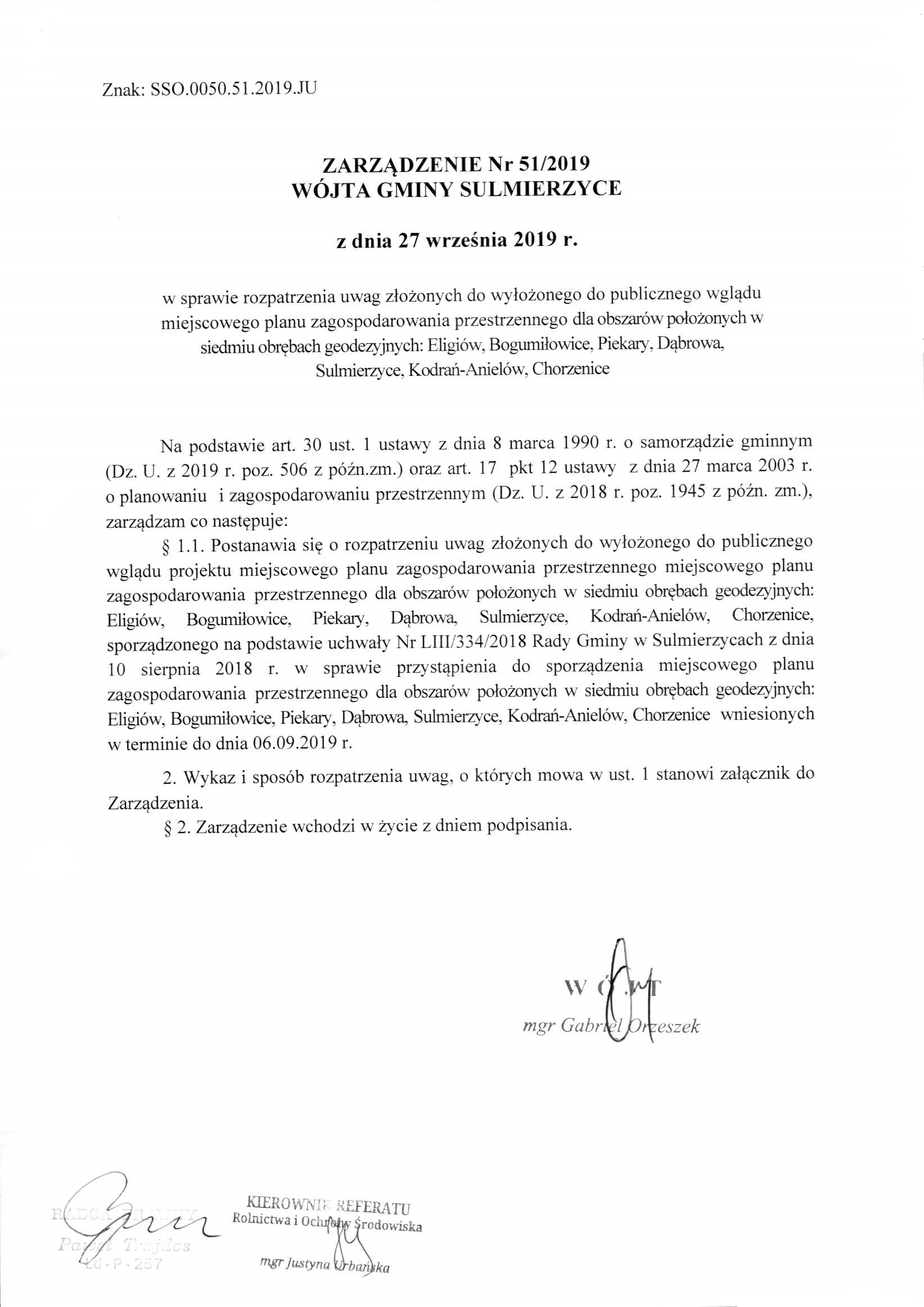 2019-09-27 przez Wójt Gminy Sulmierzyce - Gabriel Orzeszek