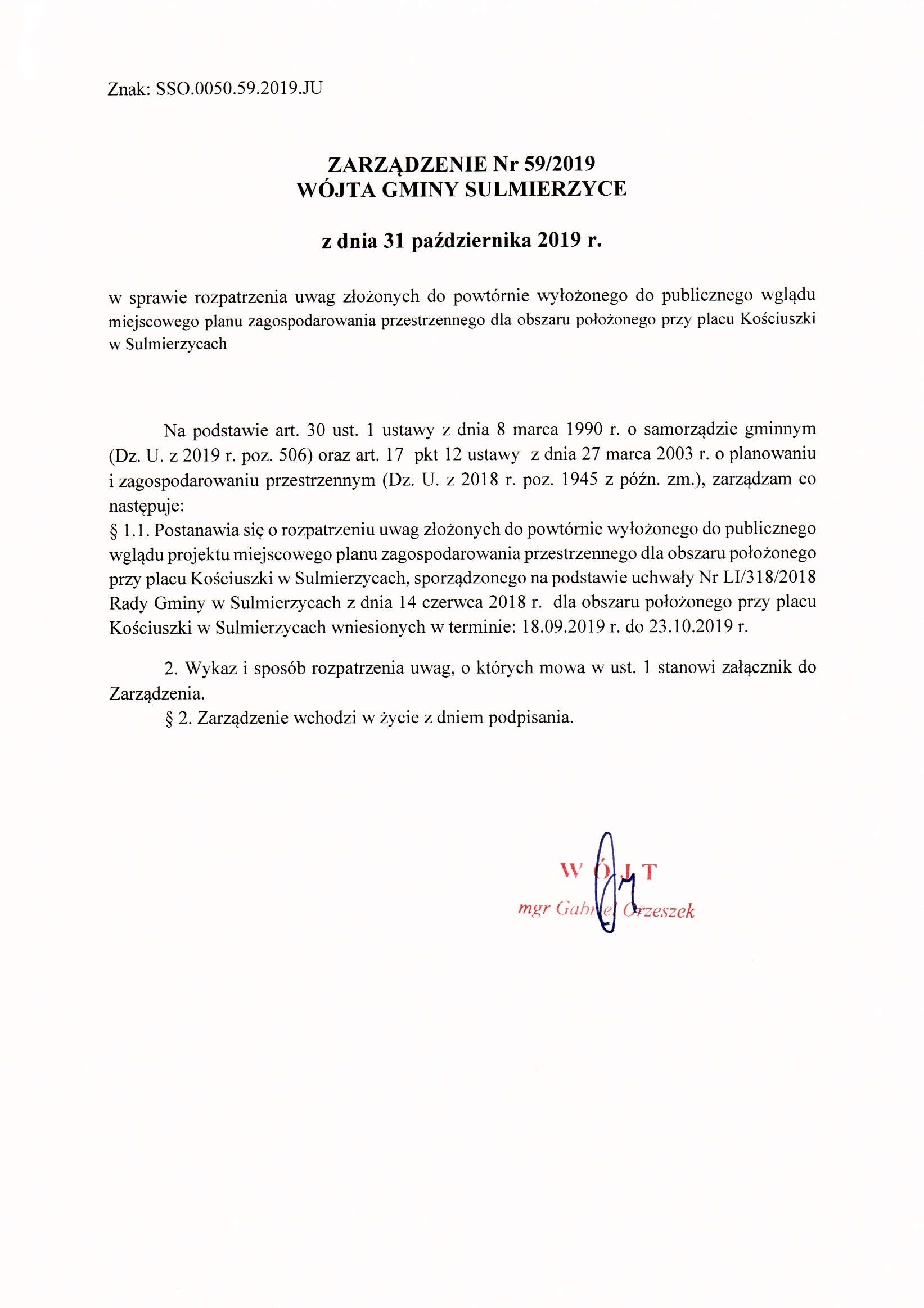 2019-10-31 przez Wójt Gminy Sulmierzyce - Gabriel Orzeszek