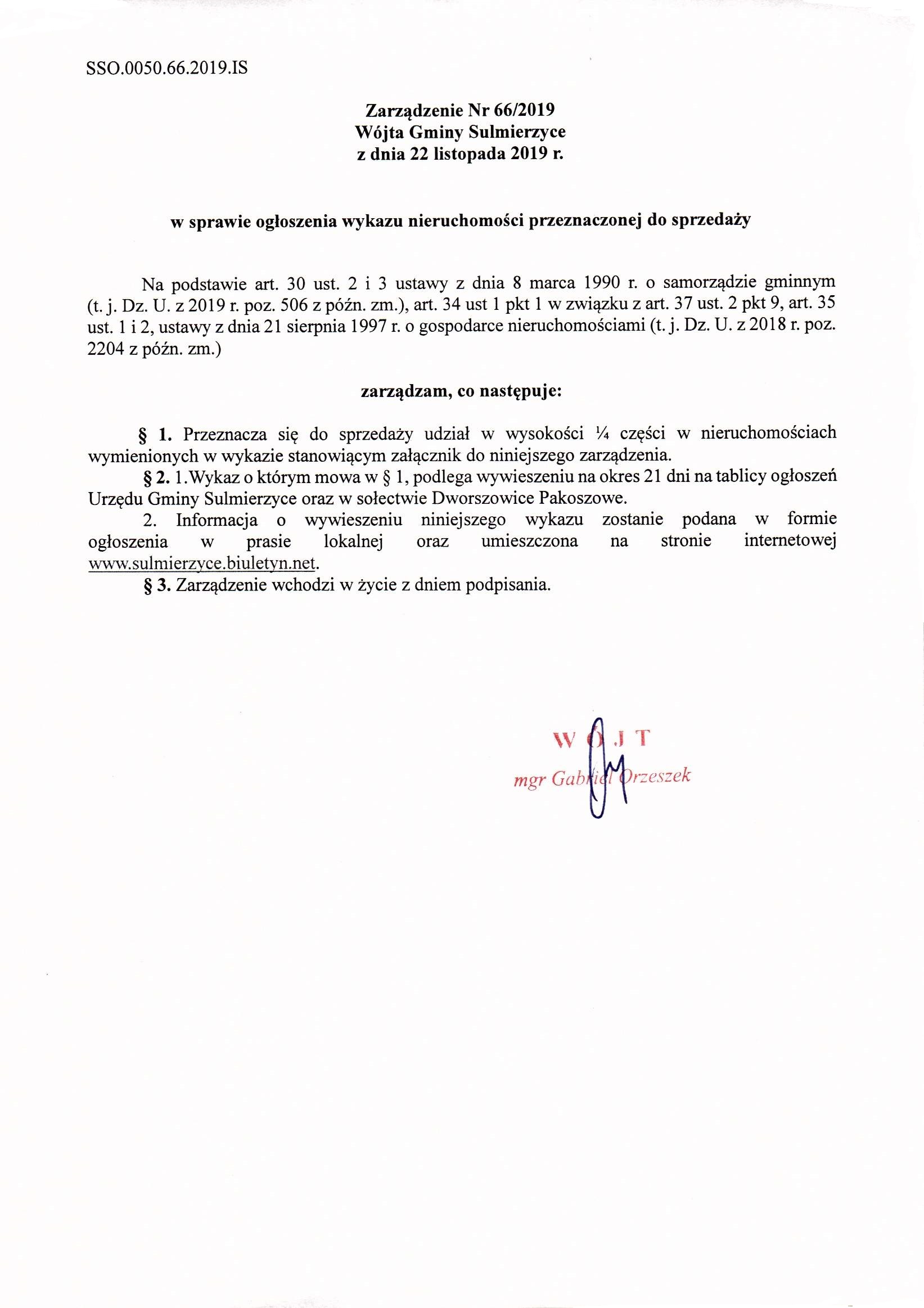 2019-11-22 przez Wójt Gminy Sulmierzyce - Gabriel Orzeszek