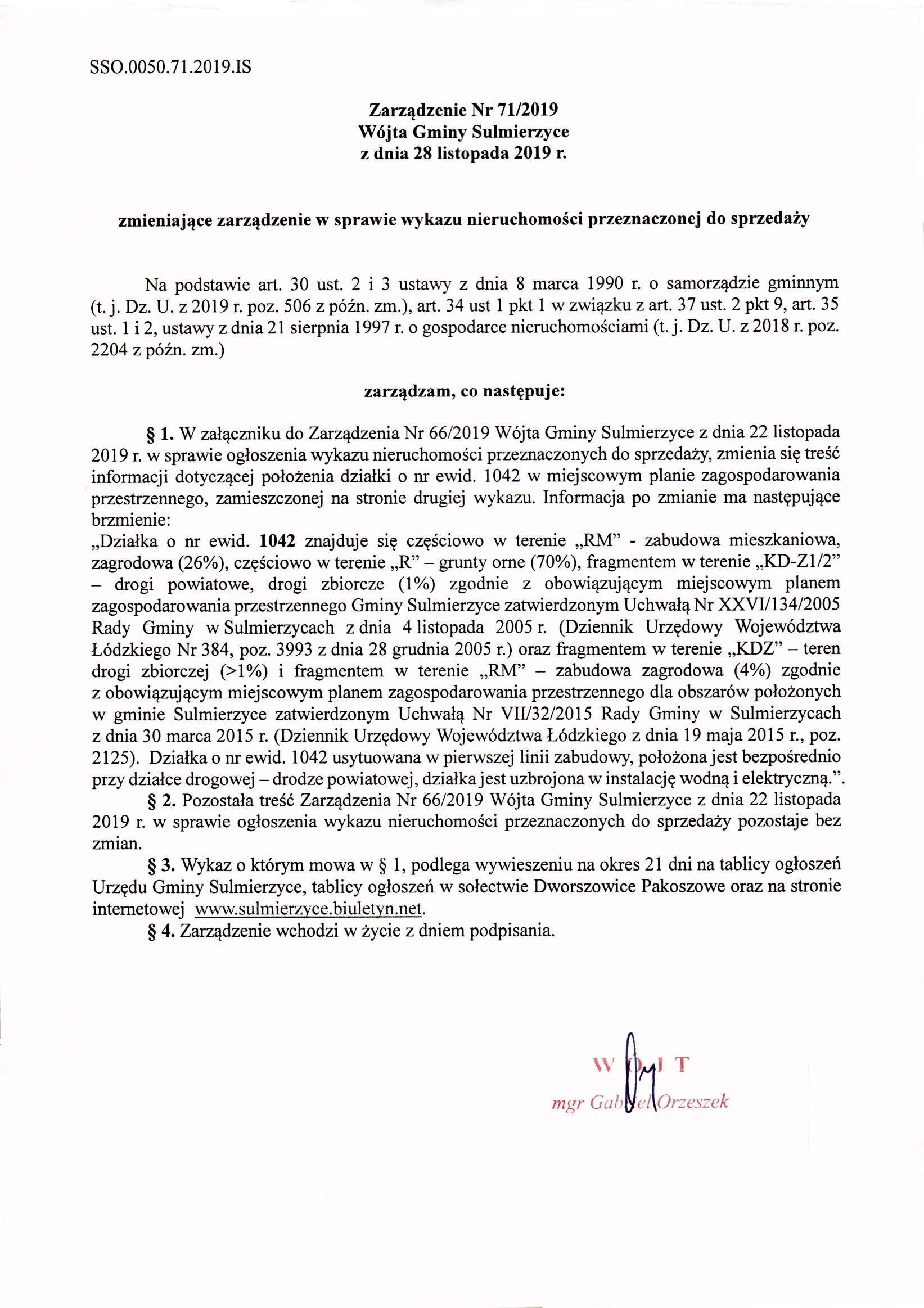 2019-11-28 przez Wójt Gminy Sulmierzyce - Gabriel Orzeszek
