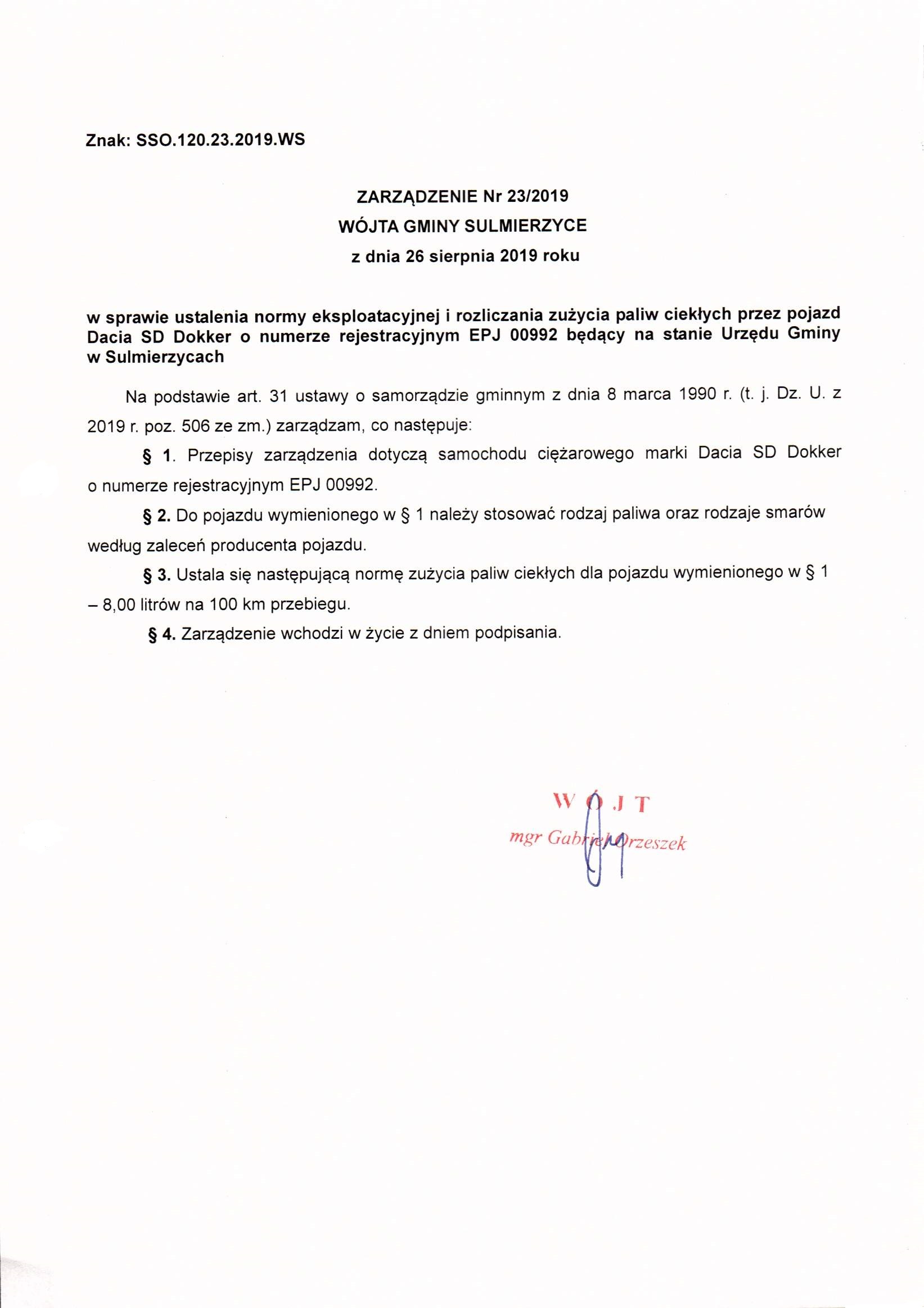 2019-08-26 przez Wójt Gminy Sulmierzyce - Gabriel Orzeszek
