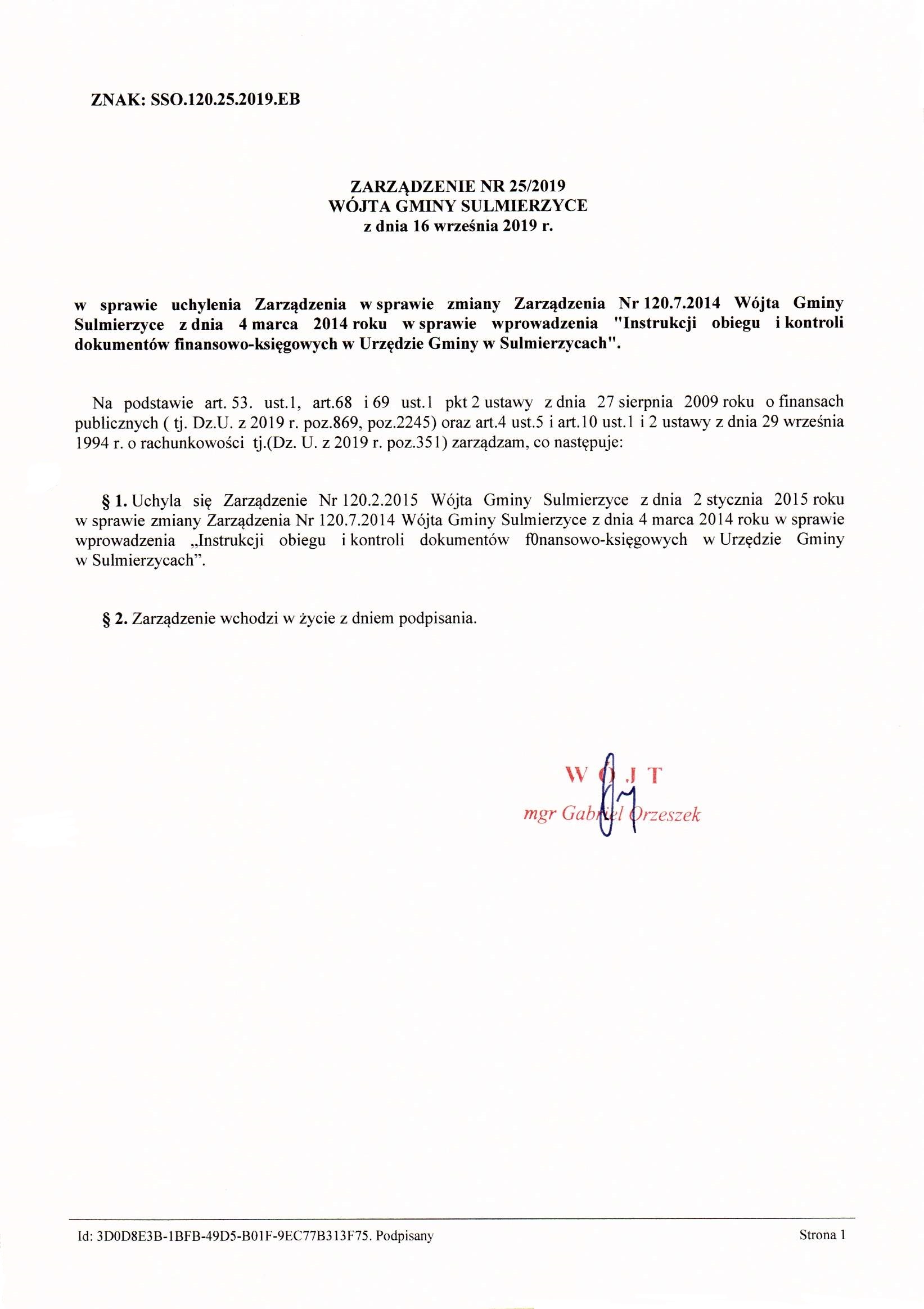 2019-09-16 przez Wójt Gminy Sulmierzyce - Gabriel Orzeszek
