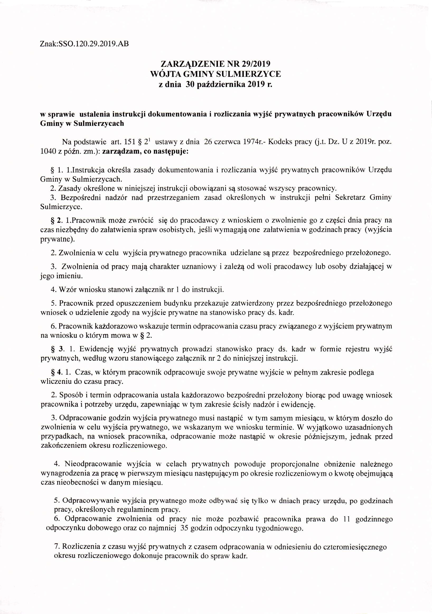 2019-10-30 przez Wójt Gminy Sulmierzyce - Gabriel Orzeszek