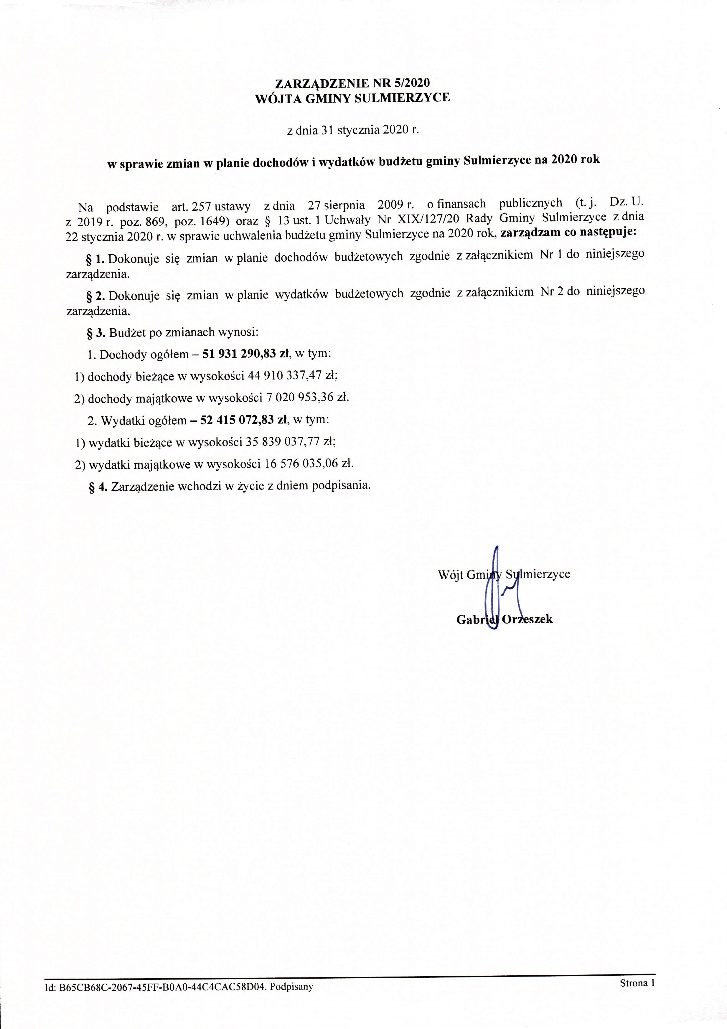 2020-01-31 przez Wójt Gminy Sulmierzyce - Gabriel Orzeszek