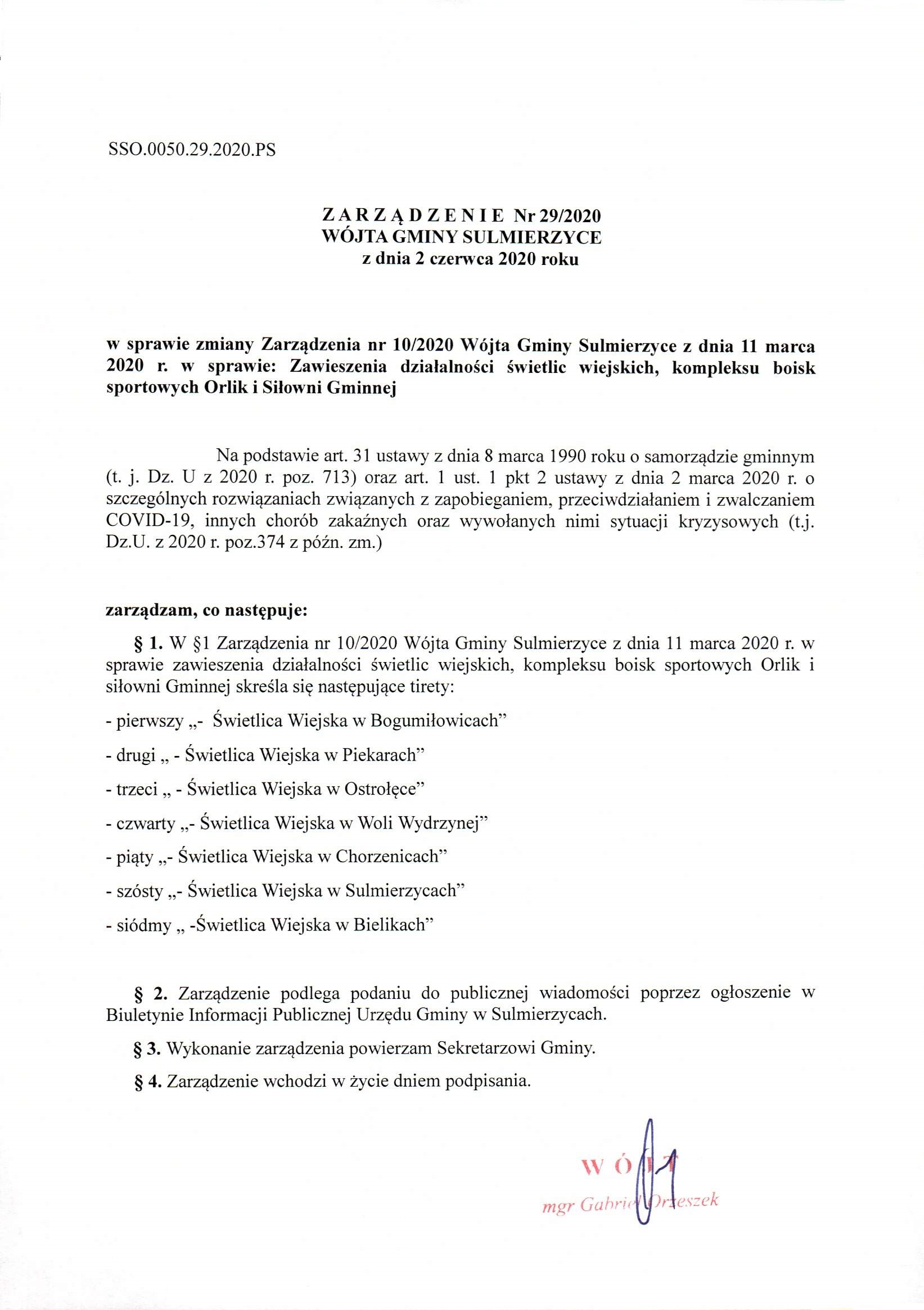 2020-06-02 przez Wójt Gminy Sulmierzyce - Gabriel Orzeszek