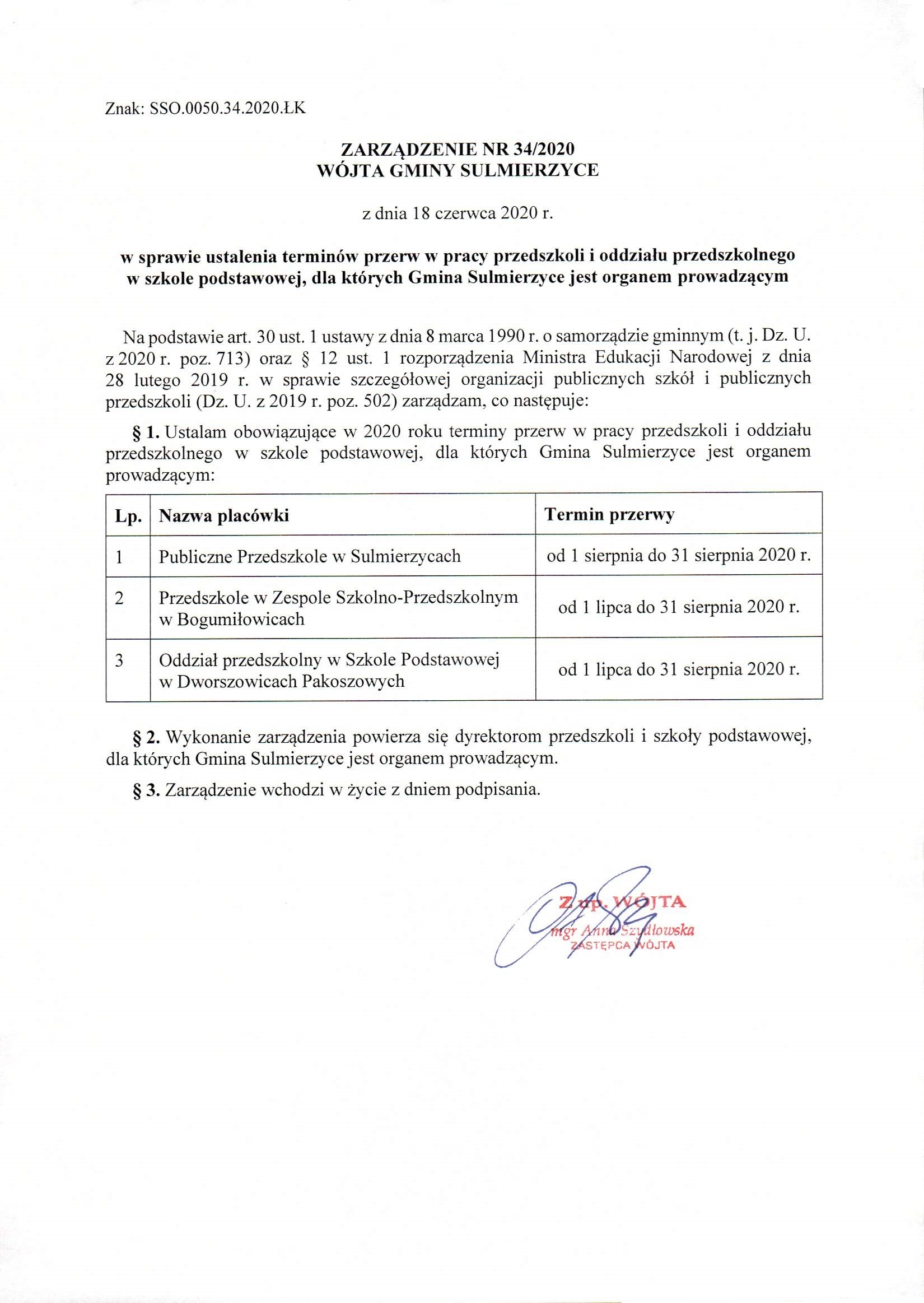 2020-06-18 przez Zastępca Wójta - Anna Szydłowska