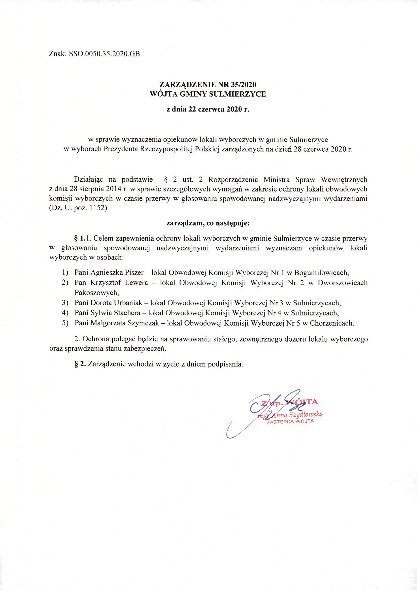 2020-06-22 przez Zastępca Wójta - Anna Szydłowska