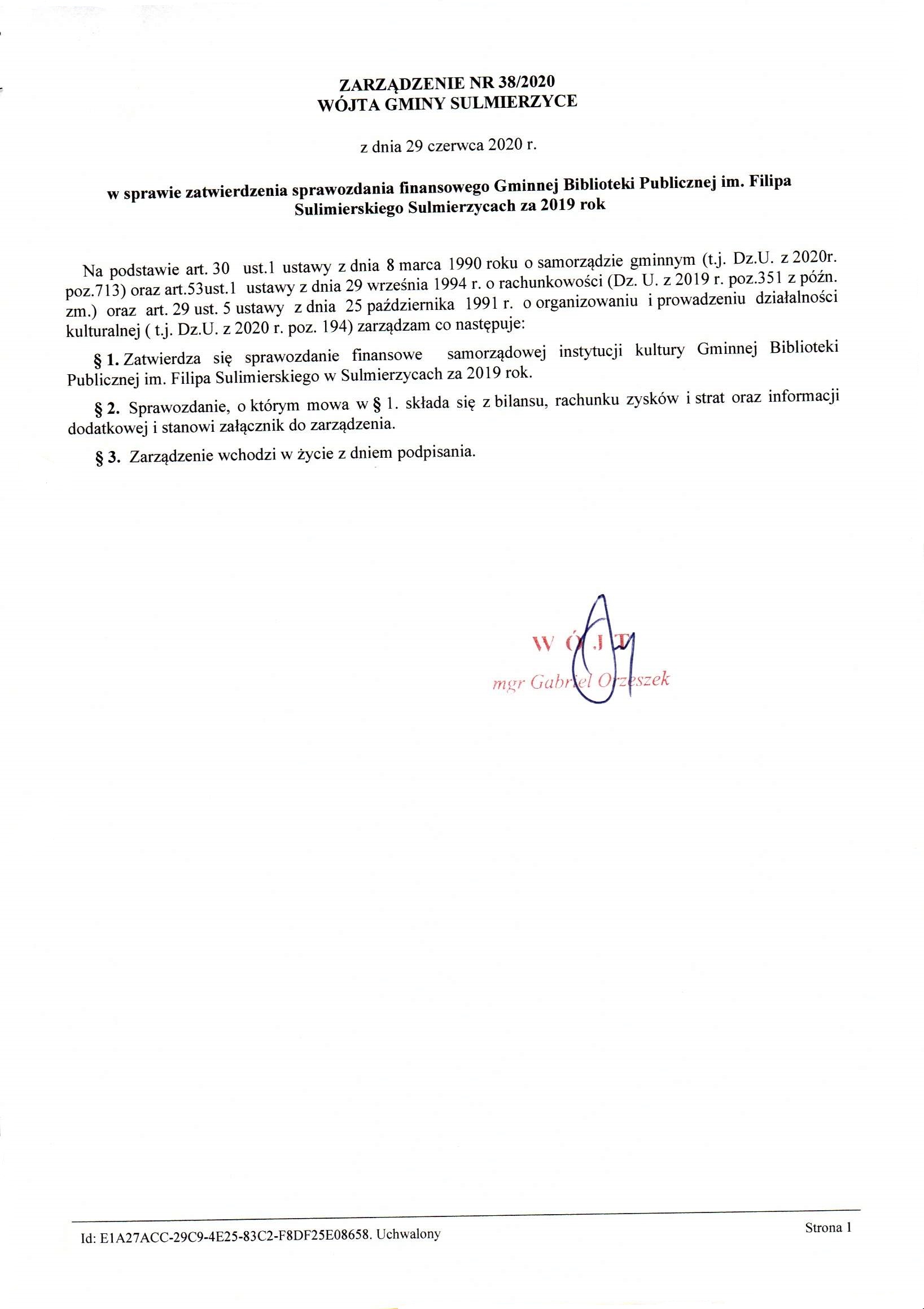 2020-06-29 przez Wójt Gminy Sulmierzyce - Gabriel Orzeszek