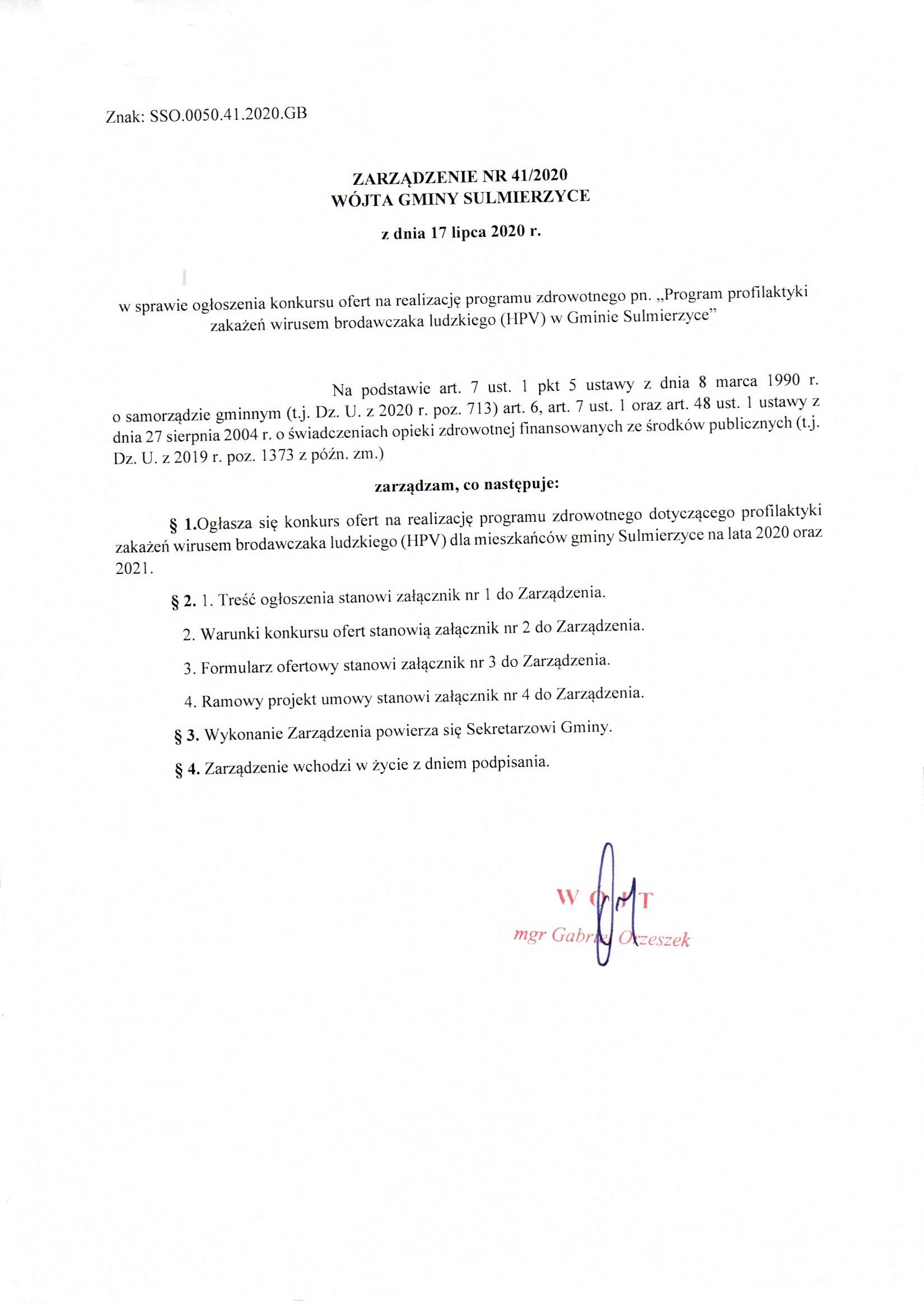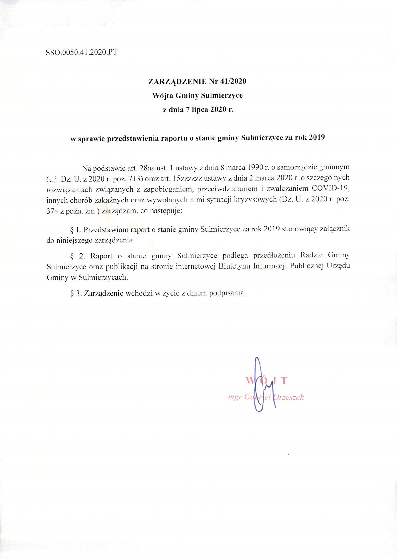 2020-07-07 przez Wójt Gminy Sulmierzyce - Gabriel Orzeszek