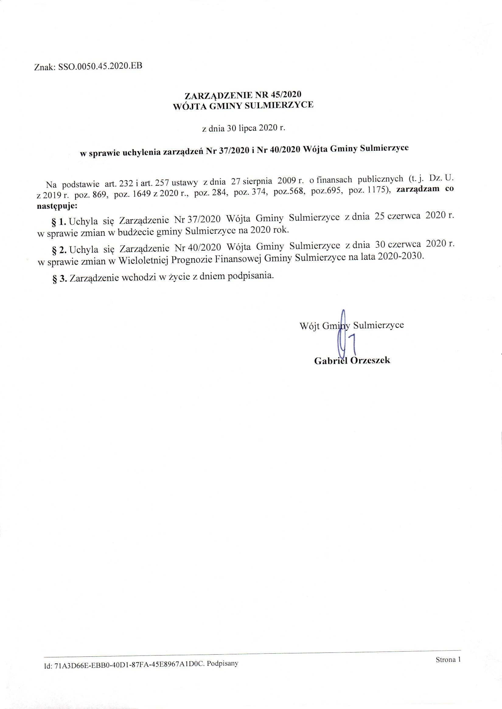 2020-07-30 przez Wójt Gminy Sulmierzyce - Gabriel Orzeszek