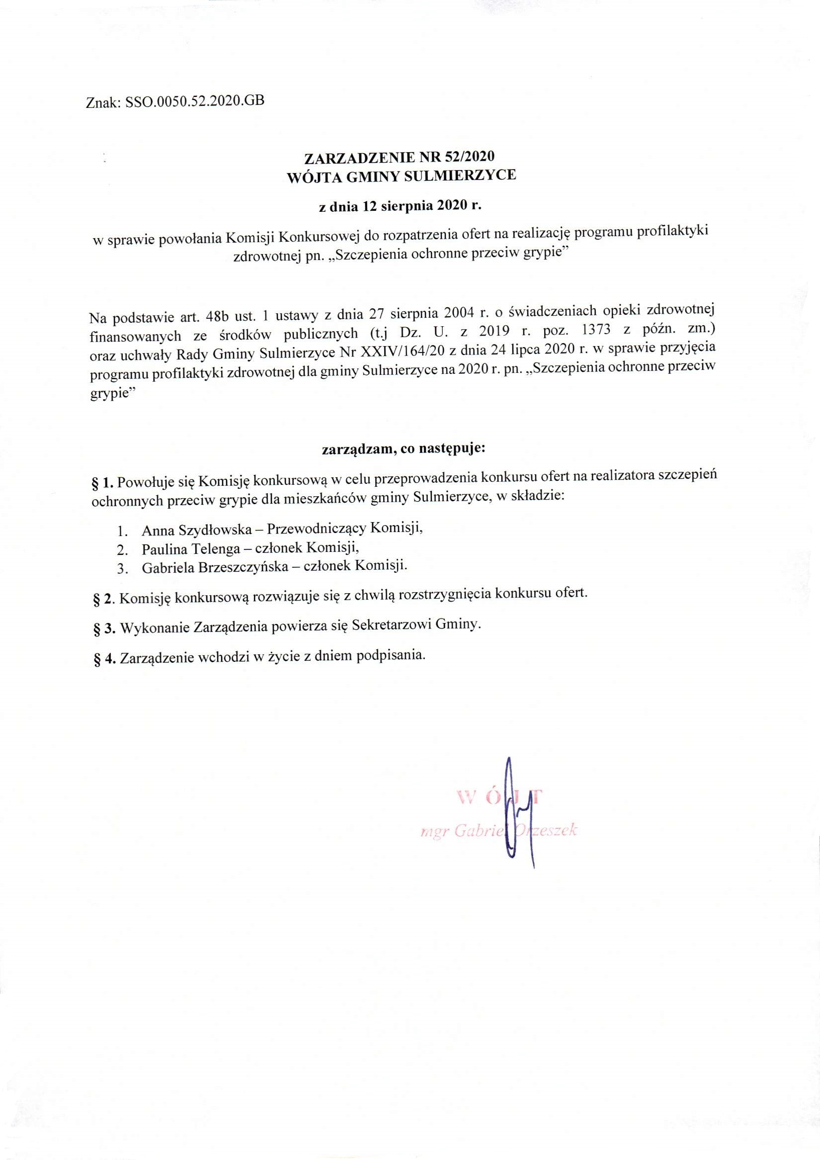 2020-08-12 przez Wójt Gminy Sulmierzyce - Gabriel Orzeszek