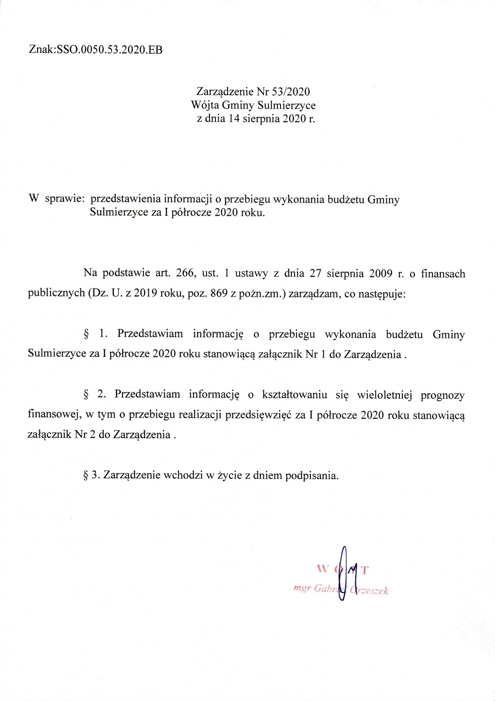 2020-08-14 przez Wójt Gminy Sulmierzyce - Gabriel Orzeszek
