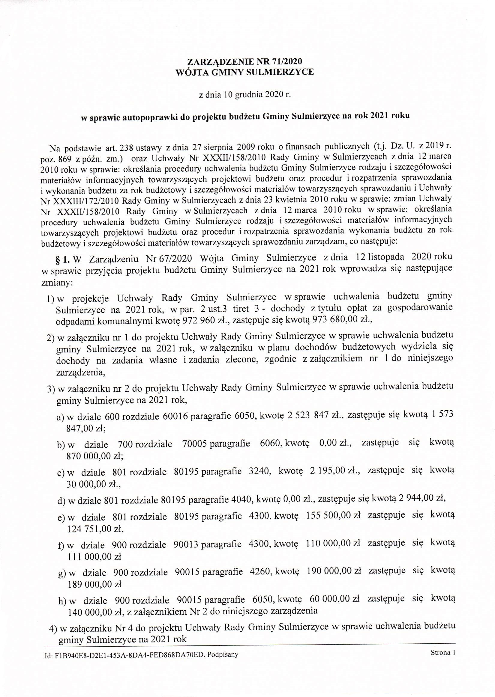 2020-12-10 przez Wójt Gminy Sulmierzyce - Gabriel Orzeszek