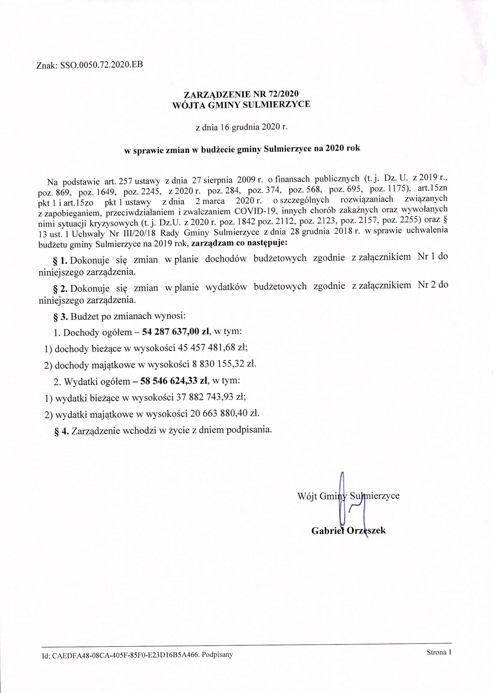 2020-12-16 przez Wójt Gminy Sulmierzyce - Gabriel Orzeszek