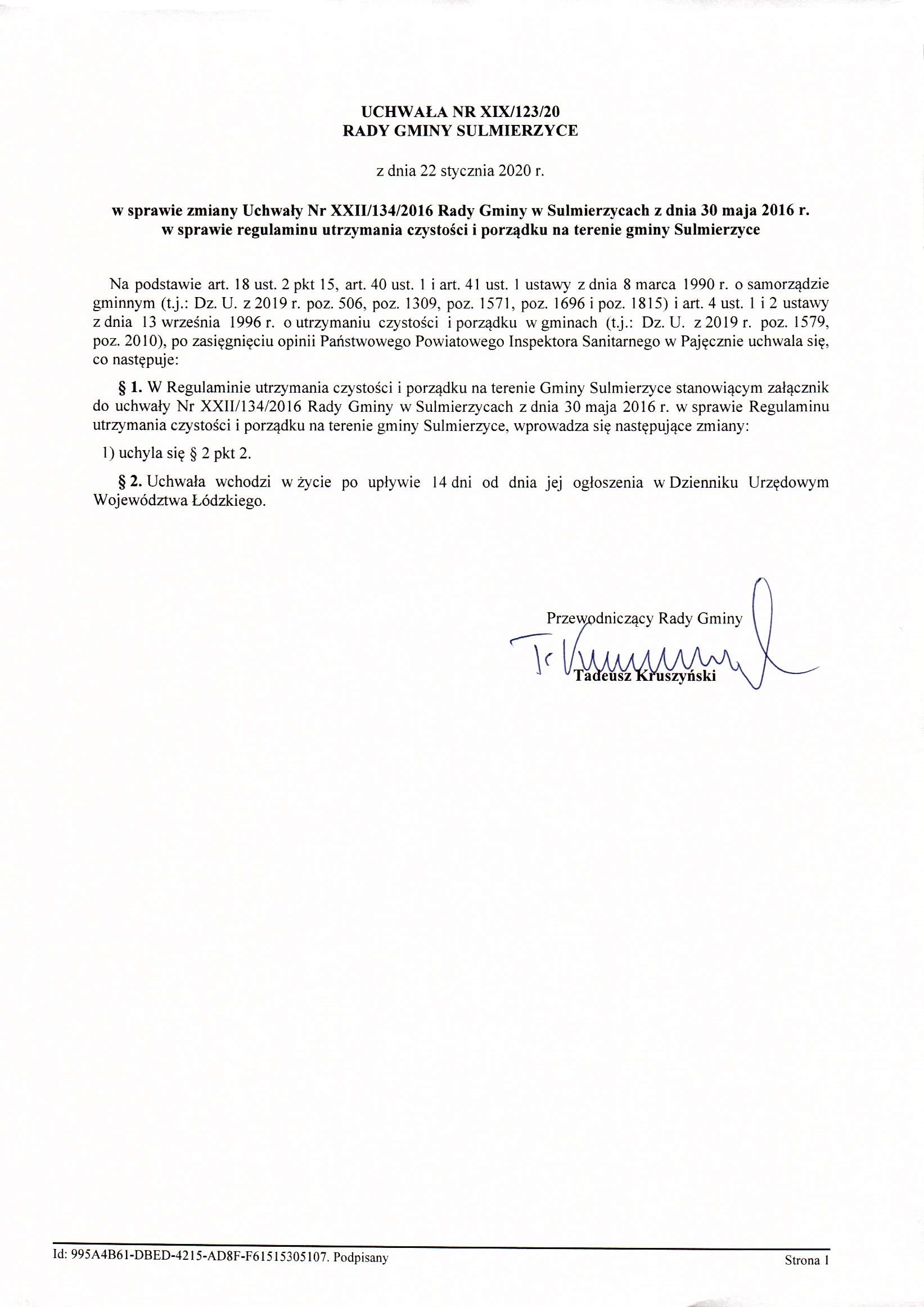 2020-01-22 przez Rada Gminy Sulmierzyce