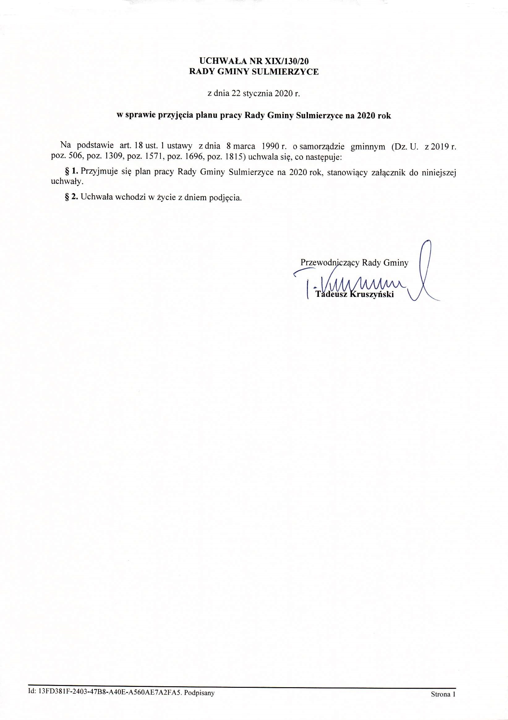 2020-01-22 przez Rada Gminy Sulmierzyce