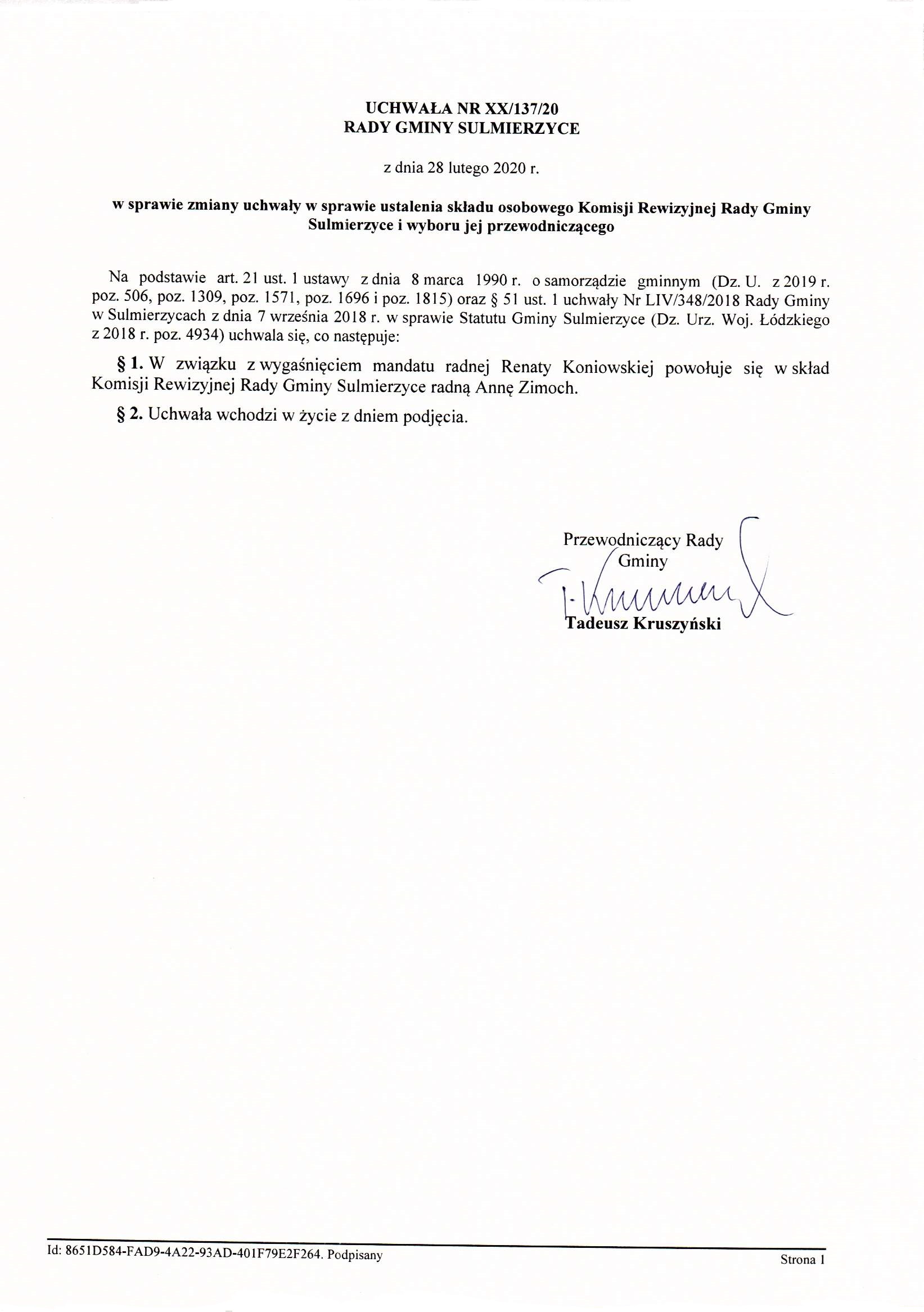 2020-02-28 przez Rada Gminy Sulmierzyce