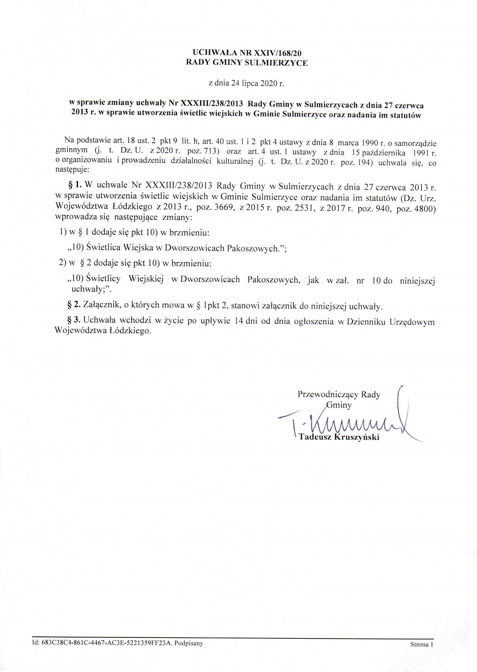 2020-07-24 przez Rada Gminy Sulmierzyce
