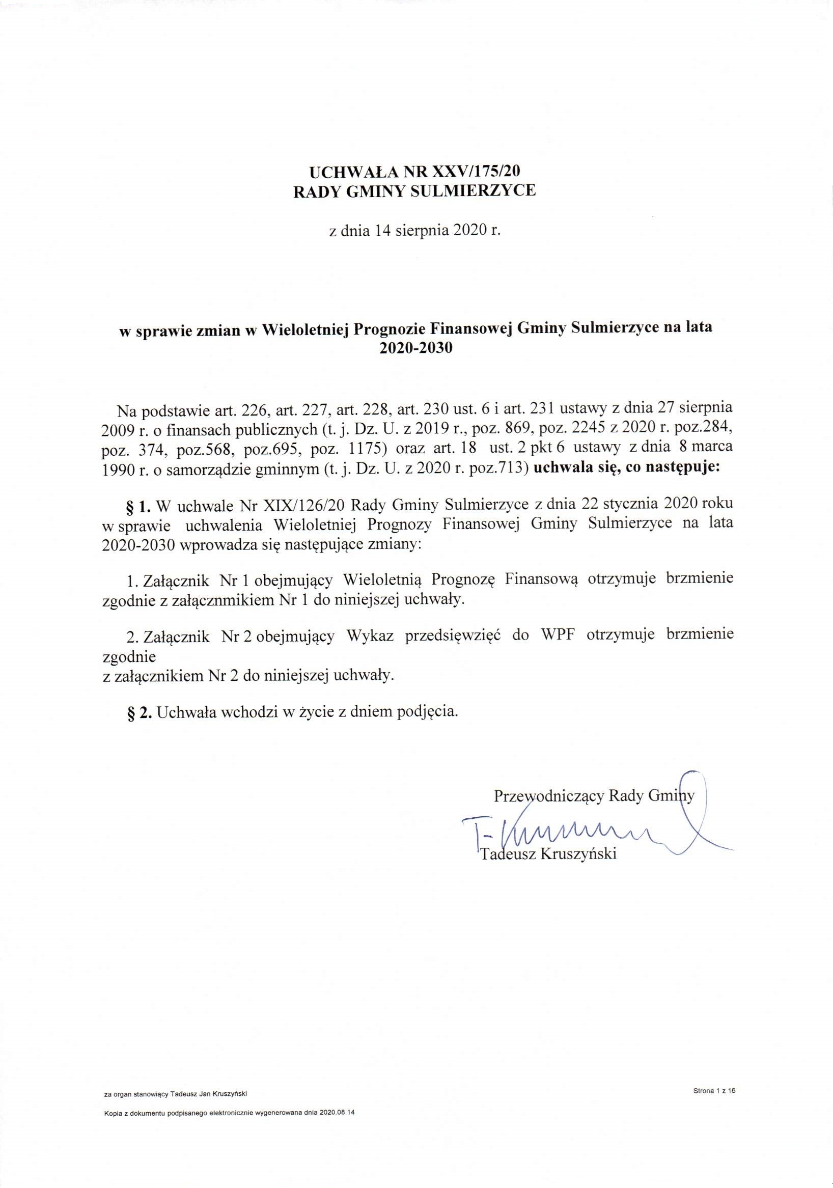 2020-08-14 przez Tadeusz Kruszyński - Przewodniczący Rady Gminy Sulmierzyce