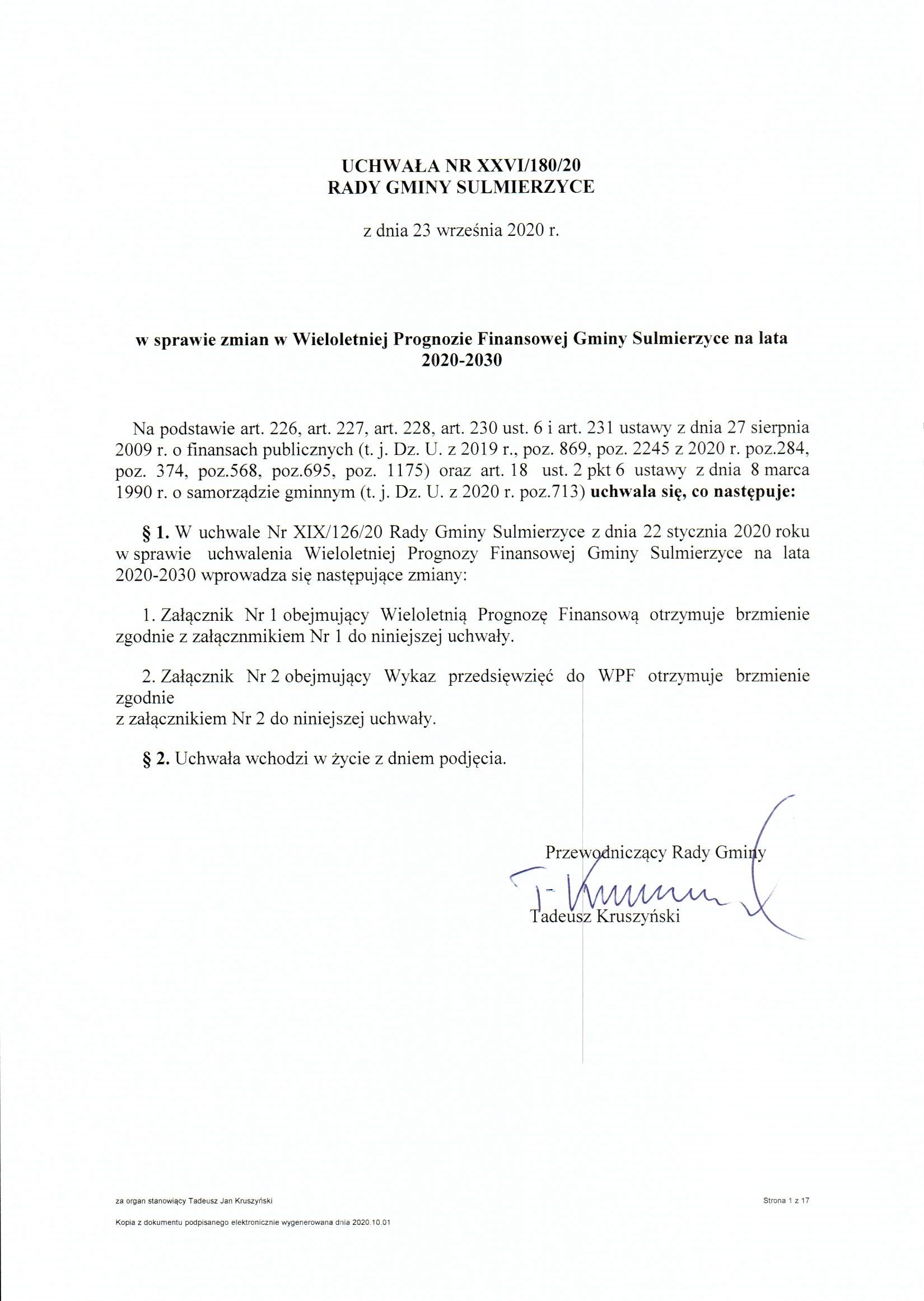 2020-09-23 przez Tadeusz Kruszyński - Przewodniczący Rady Gminy Sulmierzyce