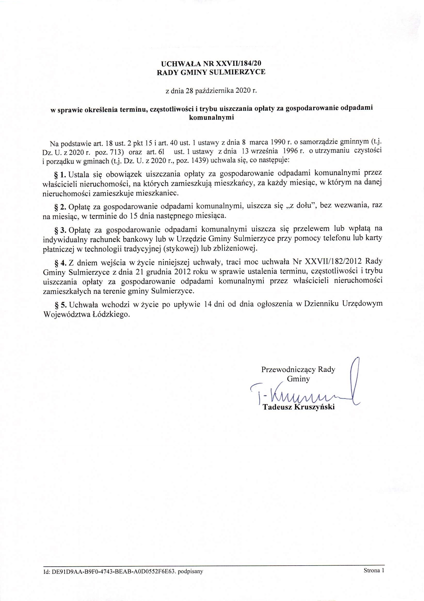 2020-10-28 przez Tadeusz Kruszyński - Przewodniczący Rady Gminy Sulmierzyce