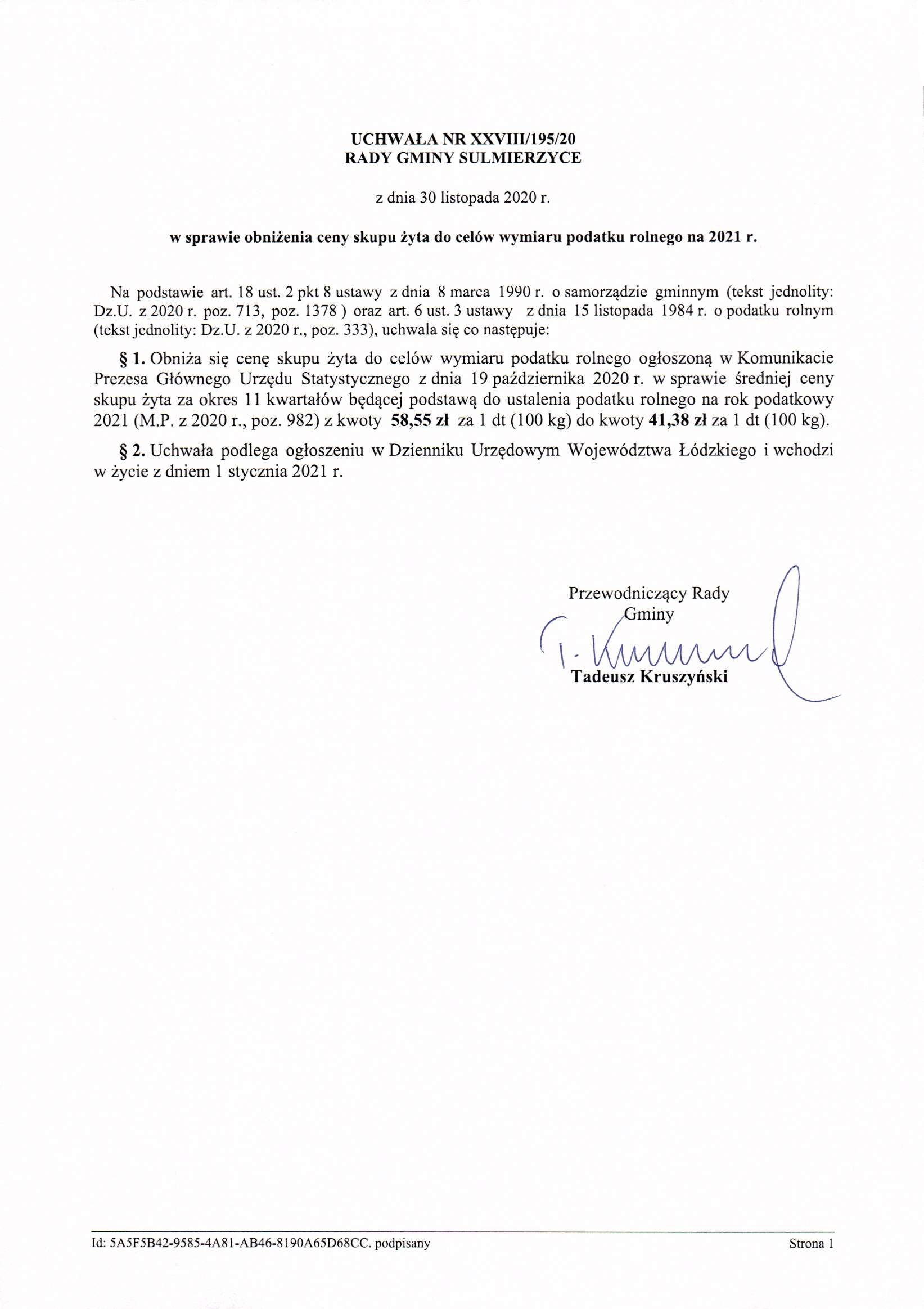 2021-11-30 przez Tadeusz Kruszyński - Przewodniczący Rady Gminy Sulmierzyce