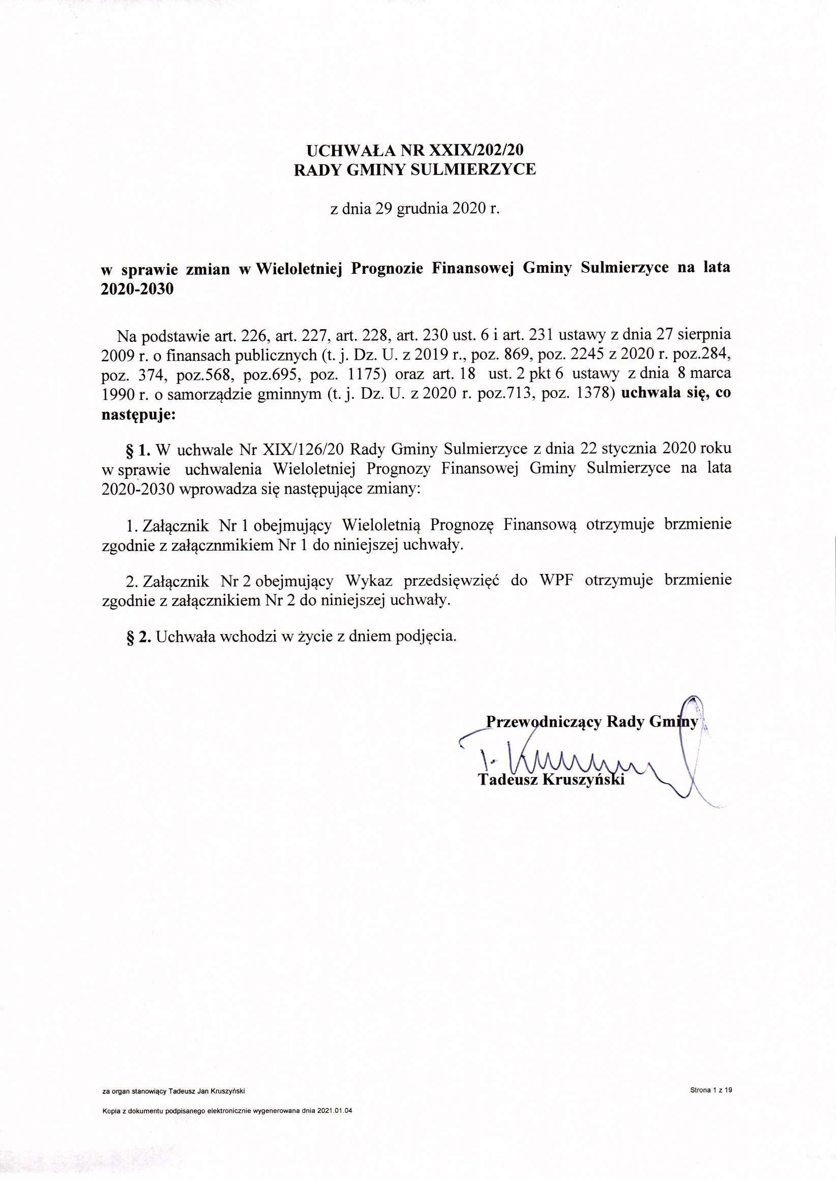 2020-12-29 przez Tadeusz Kruszyński - Przewodniczący Rady Gminy Sulmierzyce